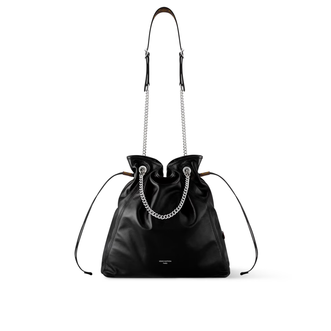 This is a replica LOUIS VUITTON M25545 Off Duty Vibe MM Bag. ,33 x 24 x 11.5 cm ,Black,Lamb leather,Cowhide leather trim,Microfibre lining,Silver-colour hardware,2 side drawstrings,1 magnetic closure,2 flat pockets,Fits 13-inch laptop, smartphone, earphones, Zippy Long Wallet, notebook, sunglasses,Strap: Non-removable, adjustable,Strap Drop: 40.0 cm,Strap Drop Max: 51.0 cm