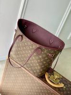 This is a replica LOUIS VUITTON M25663 Neverfull Inside Out MM Bag. ,31 x 28 x 14 cm ,Monogram/Red,Coated canvas,Cowhide leather trim,Grained cowhide leather lining,Gold-colour hardware,Removable zipped pouch,2 side laces,2 side hooks,Fits 13-inch laptop, smartphone, earphones, Zippy Wallet, keys, sunglasses, lipstick,Handle: Single x2