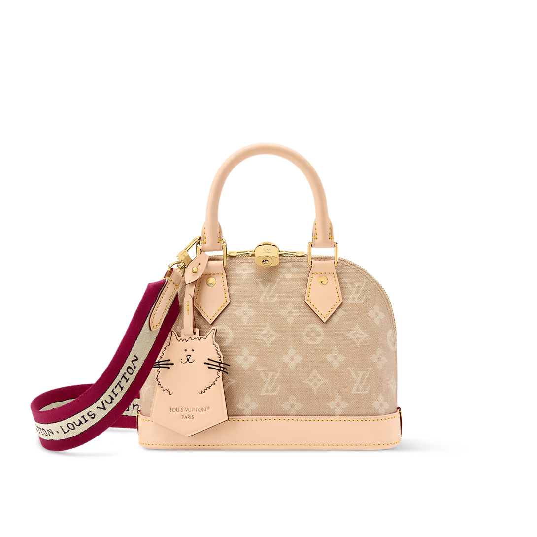 This is a replica LOUIS VUITTON M25728 Alma BB. ,23.5 x 17.5 x 11.5 cm ,Meowgram coated canvas,Cowhide leather lining,Textile lining,Gold-colour hardware,Inside flat pocket,Key bell,Padlock,4 protective metal bottom studs,Fits smartphone, Lisa Wallet, keys, lipstick,Strap: Removable, non-adjustable,Strap Drop: 50.0 cm,Handle: Single x2