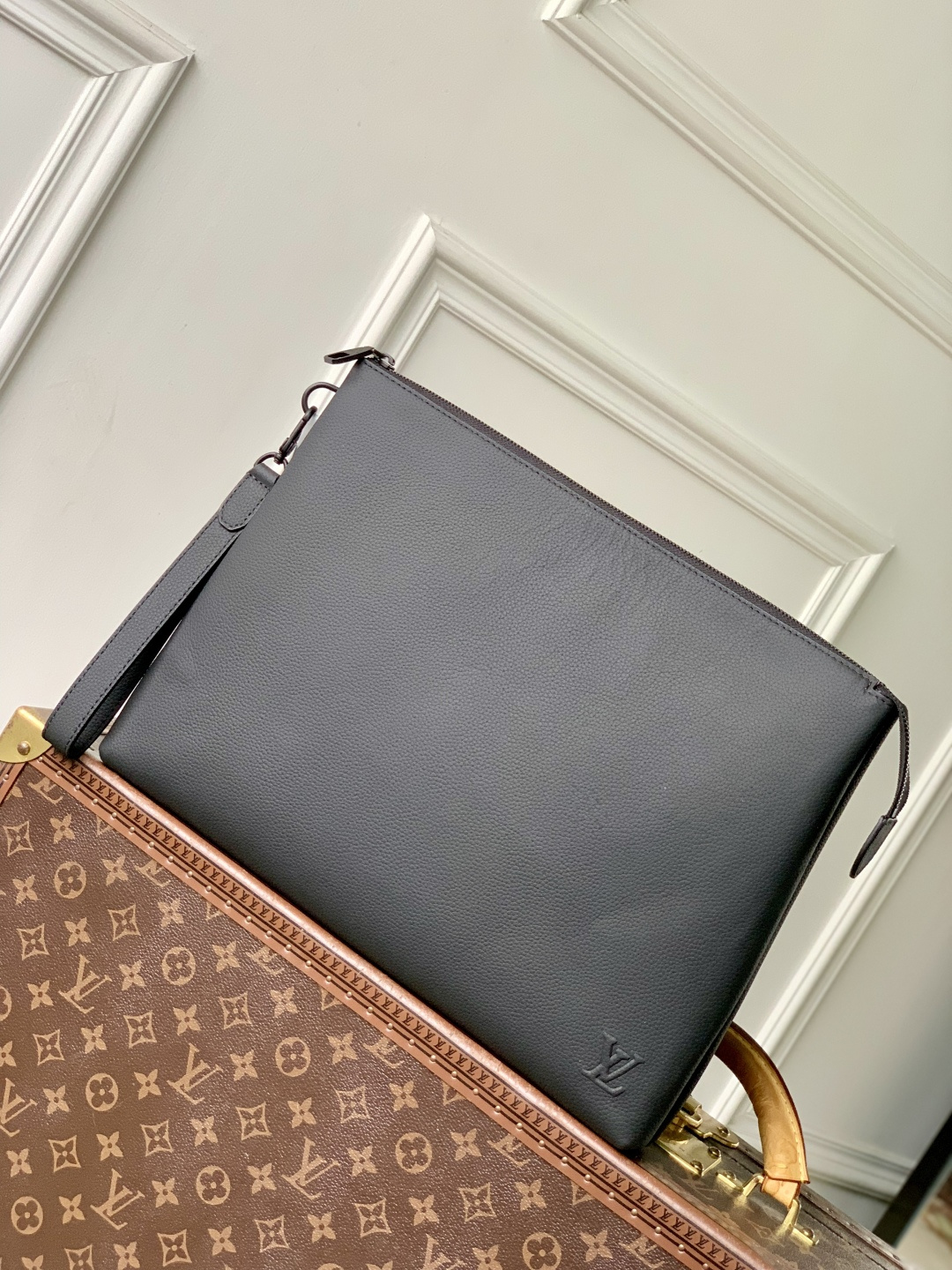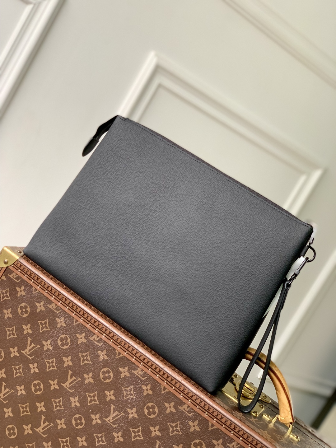 This is a replica LOUIS VUITTON M25943 ,Inspired by the laptop sleeve, the Duo Pouch in waxy calfskin pushes the design further with three separate compartments: two for laptops and a central padded compartment that is perfect for a charger, mouse or phone. Supple calf leather gives the pouch a slightly puffed aspect that protects belongings. The removable wrist strap offers versatile carry options.,
