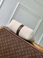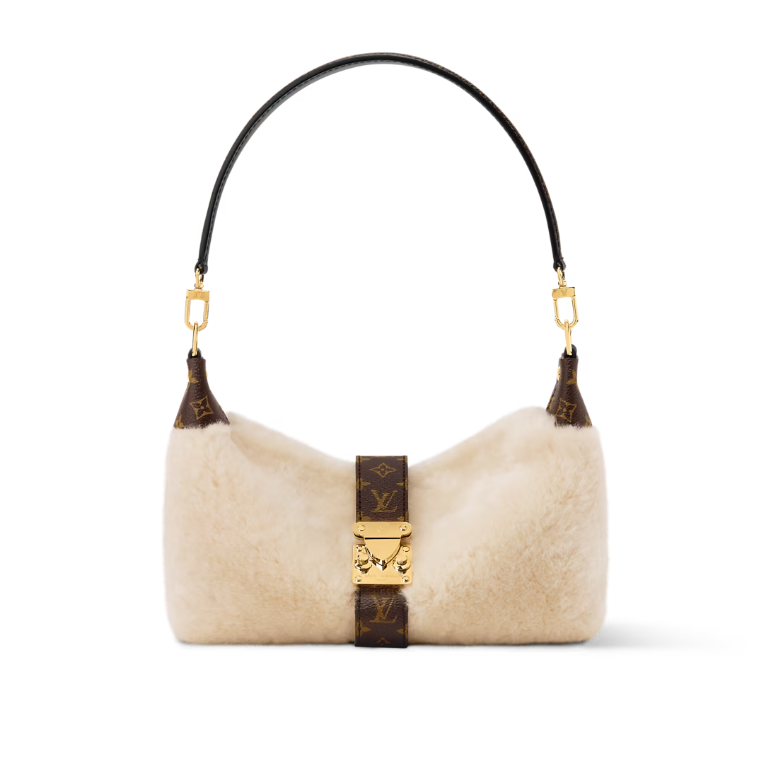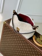 This is a replica LOUIS VUITTON M26245 Mia Pochette. ,22 x 14.5 x 8 cm ,Cream,Shearling,Coated canvas trim,Microfibre lining,Gold-colour hardware,Magnetic S-lock closure,Handle: Single, removable