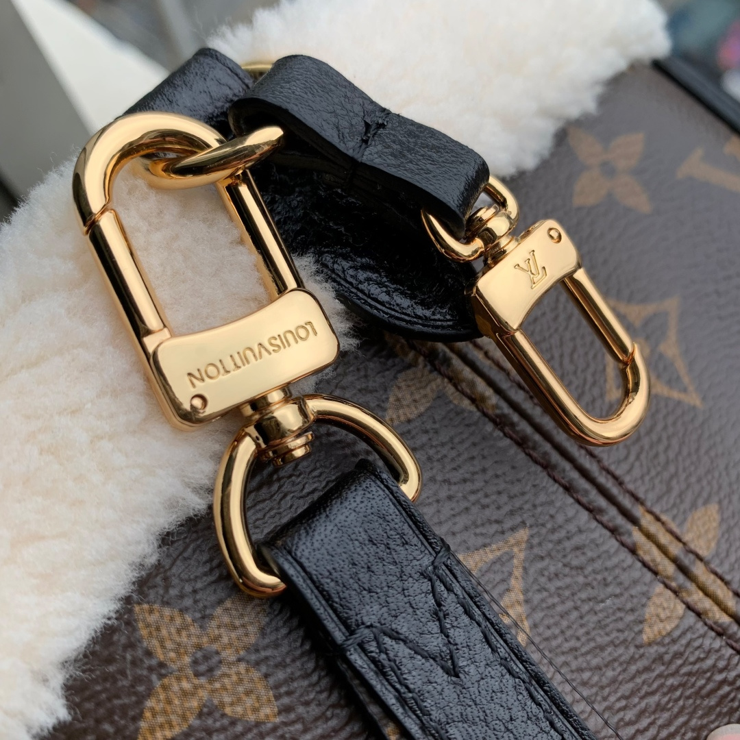 This is a replica LOUIS VUITTON M26315 Neverfull Bandoulière Inside Out BB Bag. ,26.5 x 16.5 x 11 cm ,Monogram shearling,Coated canvas and shearling,Leather trim,Shearling lining,Aged gold-colour hardware,Hook closure,1 removable zipped pouch,Fits 6.7-inch smartphone, earphones, Rosalie Coin Purse, keys, lipstick,Strap: Removable, non-adjustable,Strap Drop: 50.0 cm,Handle: Single x2