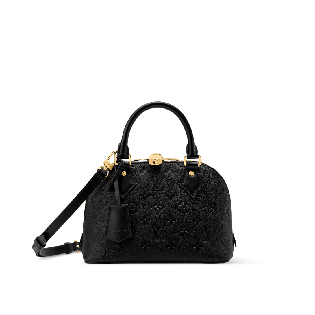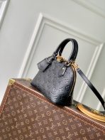 This is a replica LOUIS VUITTON M26409 Alma BB. ,23.5 x 17.5 x 11.5 cm ,Black,Cowhide leather,Cowhide leather trim,Microfibre lining,Gold-colour hardware,Zip closure with padlock and keys,1 key bell,1 flat inside pocket,4 protective metal base feet,Fits smartphone, earphones, Compact Wallet, sunglasses,Strap: Removable, adjustable,Strap Drop: 50.0 cm,Strap Drop Max: 62.0 cm,Handle: Single x2
