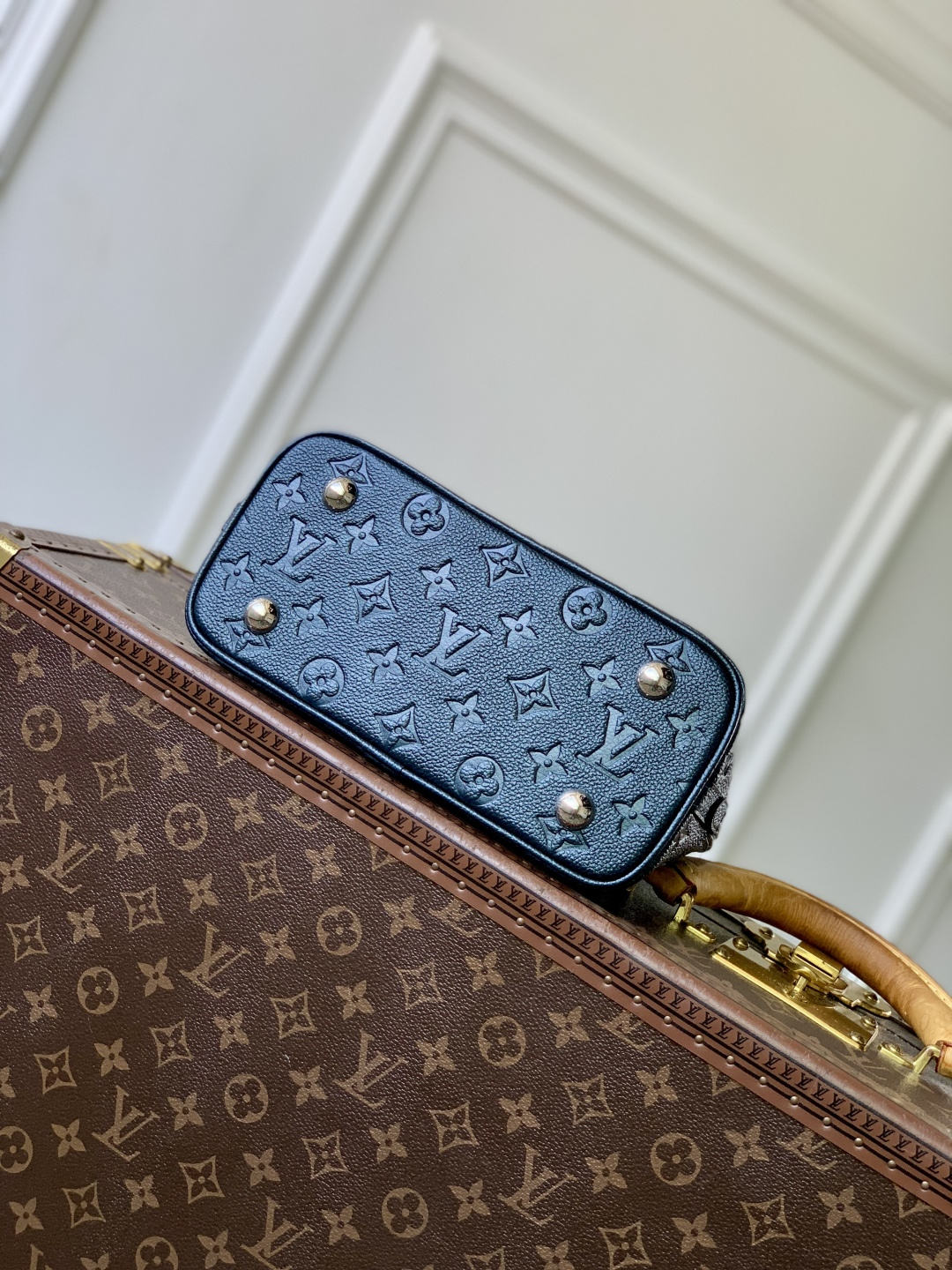 This is a replica LOUIS VUITTON M26686 Alma BB. ,23.5 x 17.5 x 11.5 cm ,Shimmery Ink,Cowhide leather,Cowhide leather trim,Microfibre lining,Silver-colour hardware,1 removable charm in gold-colour, ruthenium and silver-colour finish,1 zip closure,1 key bell,1 flat inside pocket,4 protective metal base feet,Fits smartphone, earphones, compact wallet, sunglasses,Strap: Removable, non-adjustable,Strap Drop: 56.0 cm,Handle: Single x2,Fits 6.7-inch smartphone, earphones, sunglasses, keys, lipstick,Strap: Removable, non-adjustable,Strap Drop: 52.0 cm,Handle: Single x2