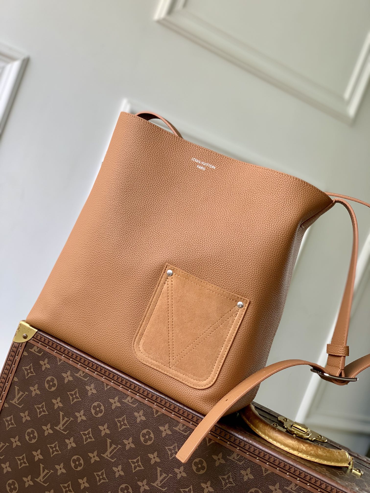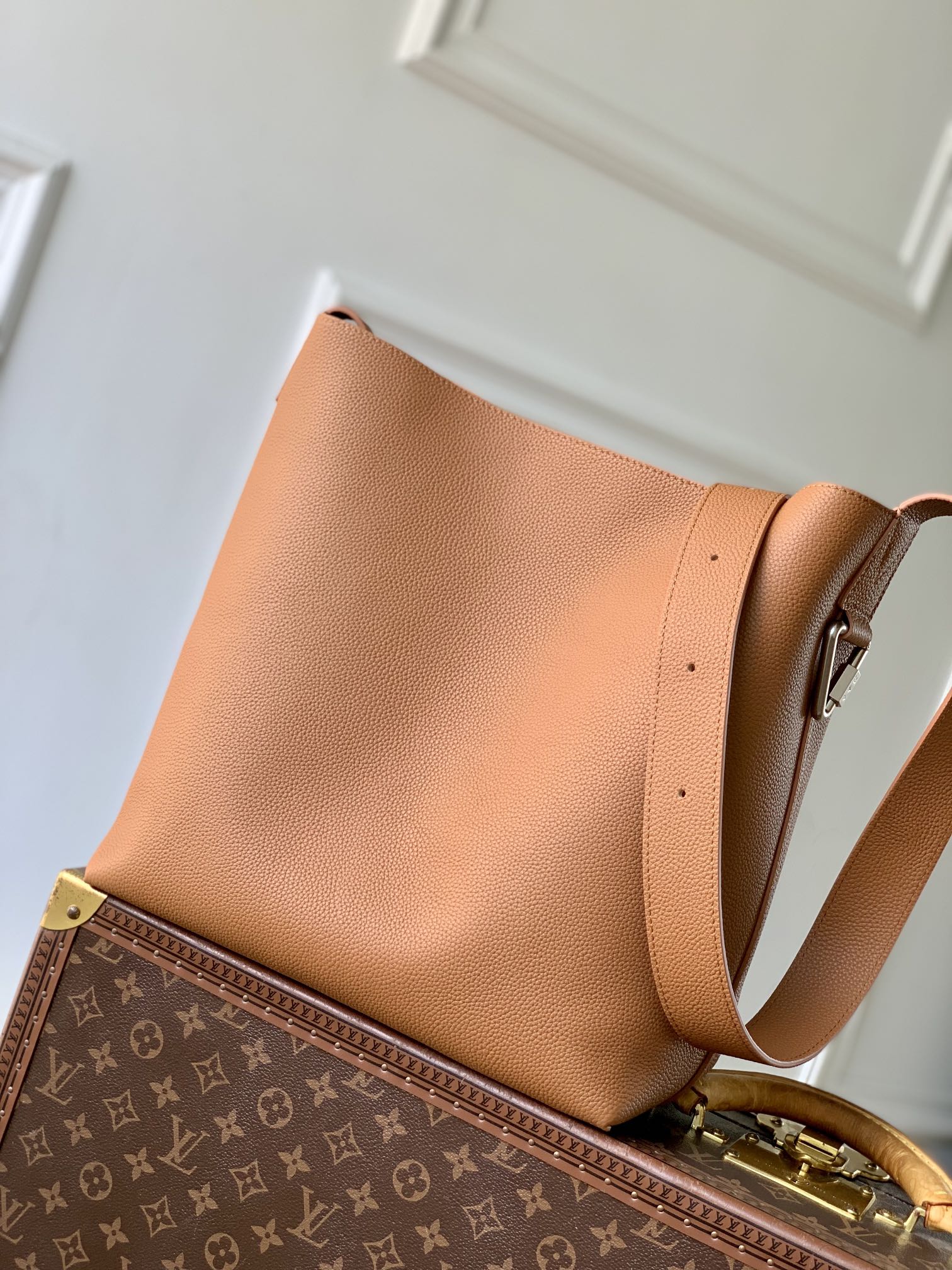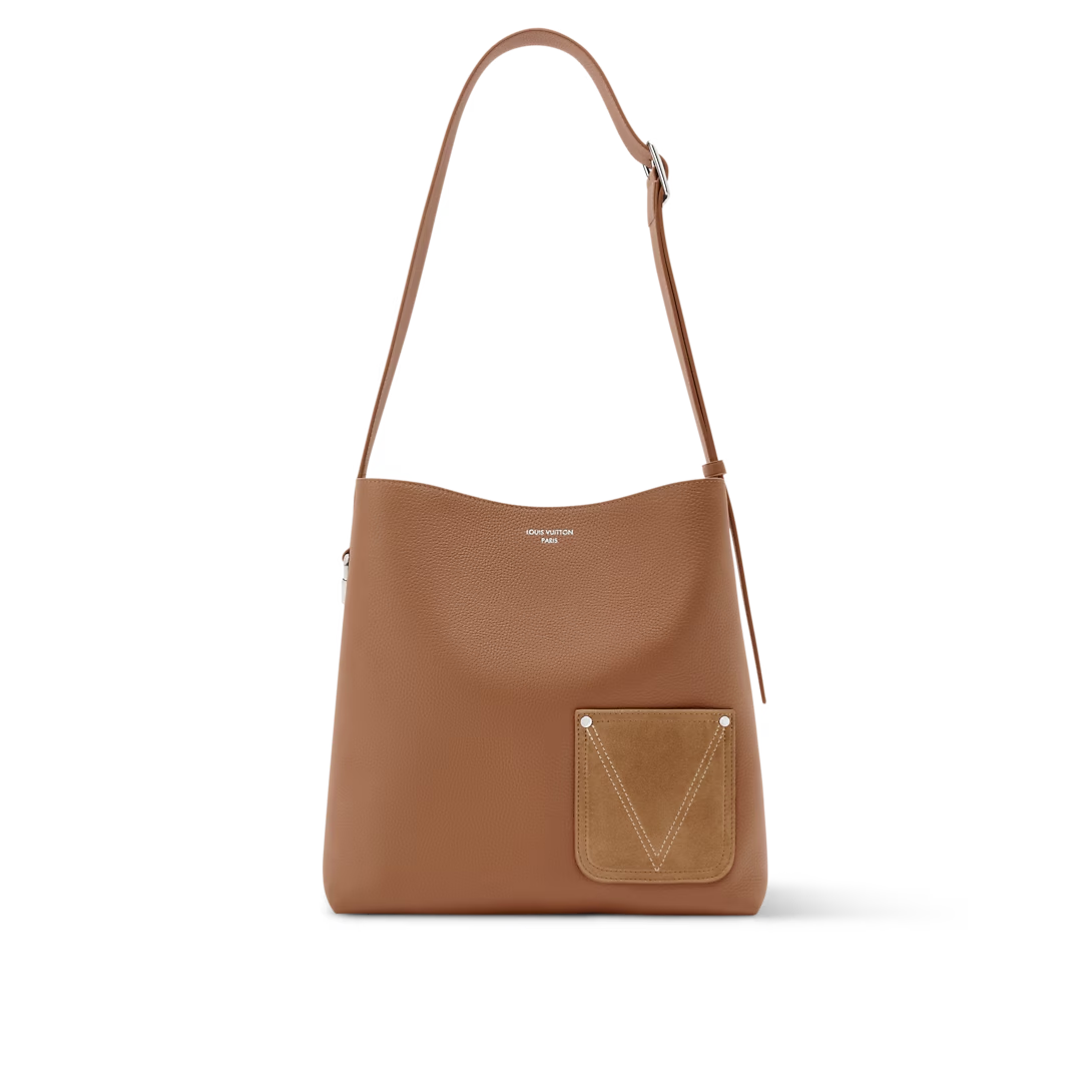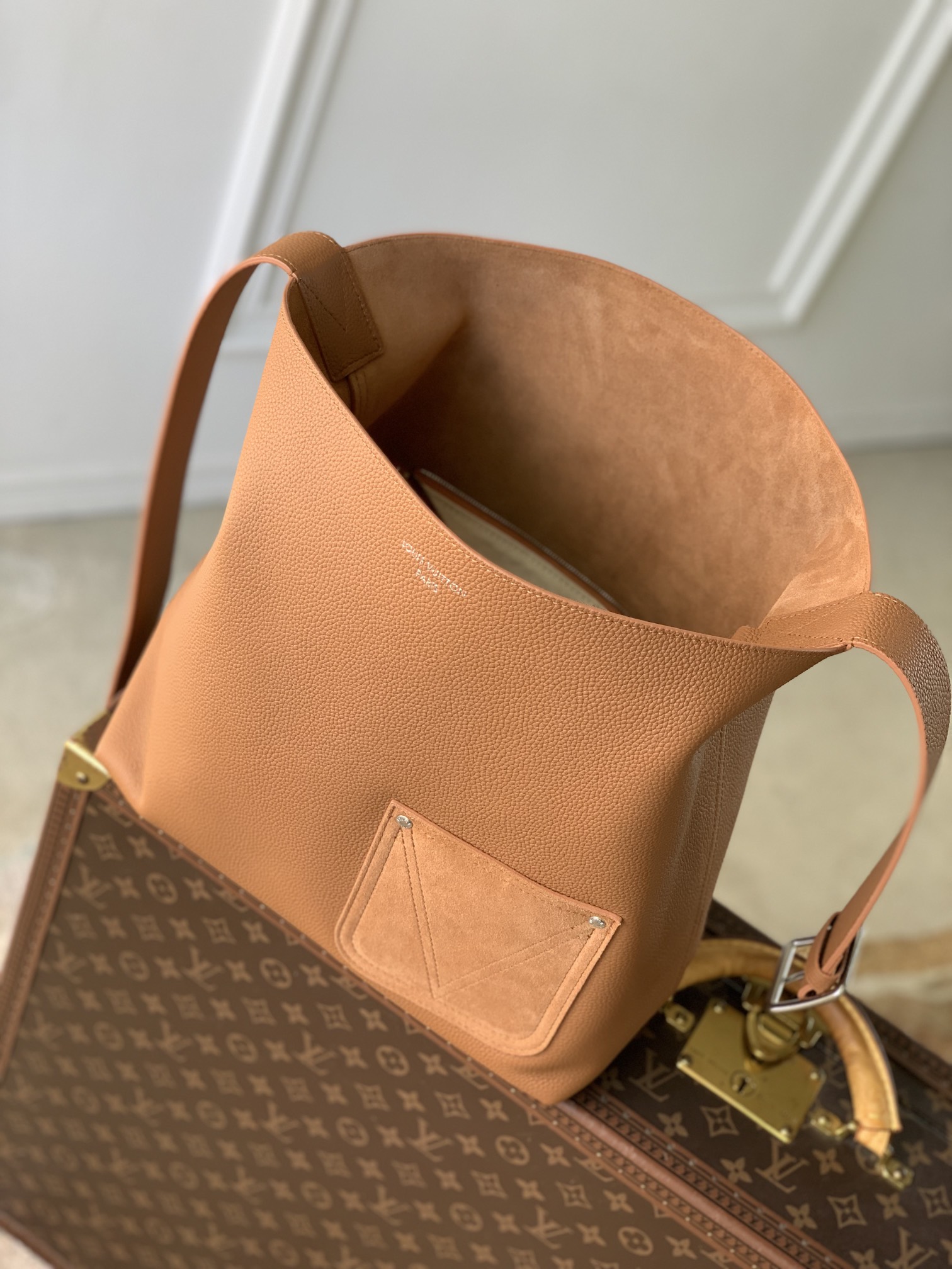 This is a replica LOUIS VUITTON M26745 Verso Hobo Bag. ,30 x 33 x 15.5 cm ,Tan,LV Touch cowhide leather,Cowhide leather trim,Suede lining,Silver-colour hardware,Front pocket,Carabiner clip,Inside removable zipped pouch,Inside pocket,Strap: Non-removable, adjustable,Strap Drop: 39.5 cm,Strap Drop Max: 53.0 cm