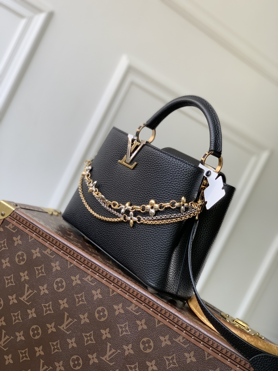 Stock: In Stock Model: LVCapucines004 Weight: 0.60kg Dimensions: 31.05cm x 11.00cm x 20.00cm