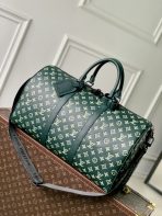 This is a replica LOUIS VUITTON M27179 Keepall Bandoulière 50. ,50 x 29 x 23 cm ,Denim Boro Landscape,Cowhide leather trim,Cotton lining,Gold-colour hardware,Cabin size,Double zip closure,Padlock,Removable name tag,Leather patch,Zipped inside pocket,Handle: Single x2