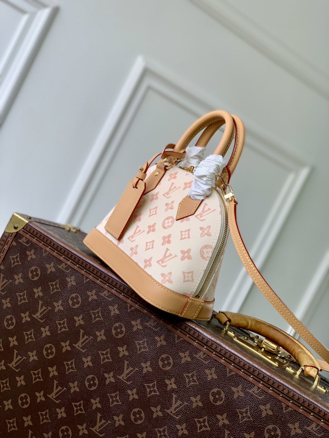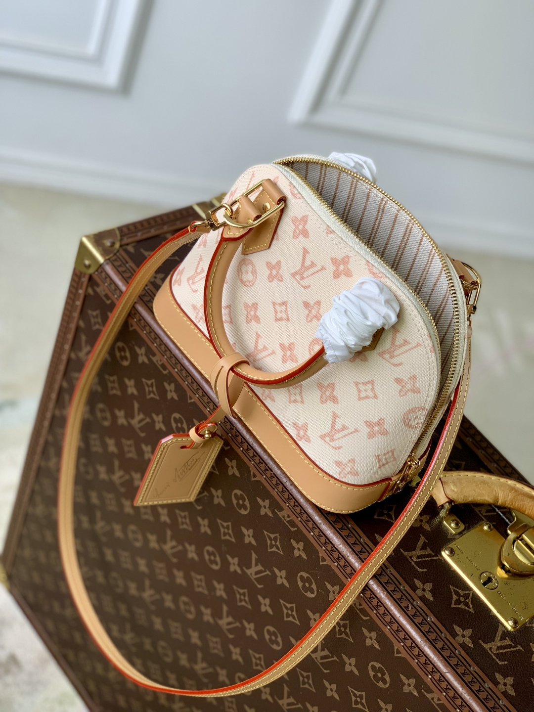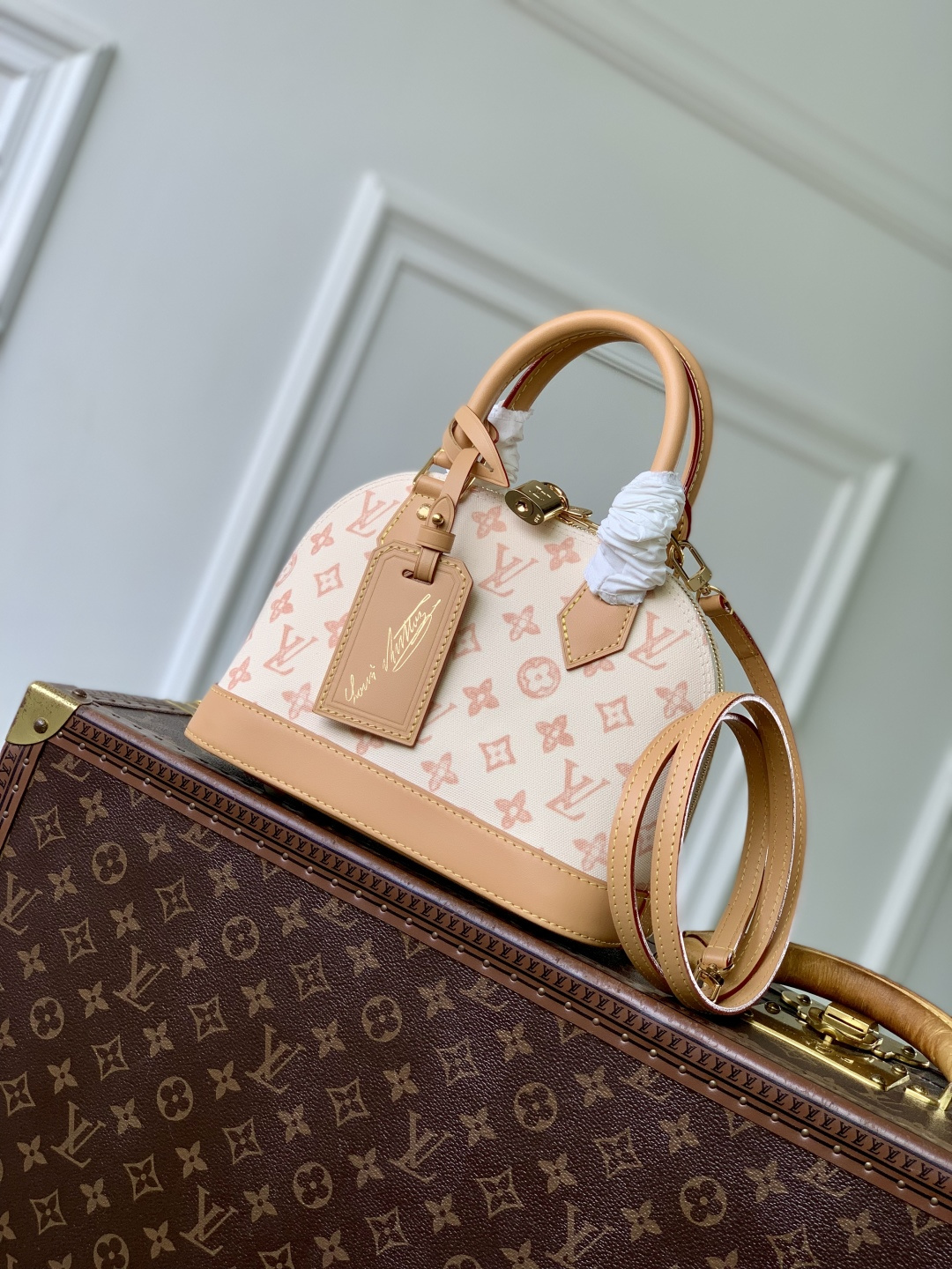This is a replica LOUIS VUITTON M27525 Alma BB. ,23.5 x 17.5 x 11.5 cm ,Monogram Origine Linen,Coated canvas,Cowhide leather trim,Striped textile lining,Gold-colour hardware,Double zip and padlock closure,1 removable special anniversary address tag,1 flat inside pocket,1 inside celebratory leather label,4 protective metal base feet,Fits 6.7-inch smartphone, earphones, Zippy Wallet, keys,Strap: Removable, adjustable,Strap Drop: 50.0 cm,Strap Drop Max: 62.0 cm,Handle: Single x2