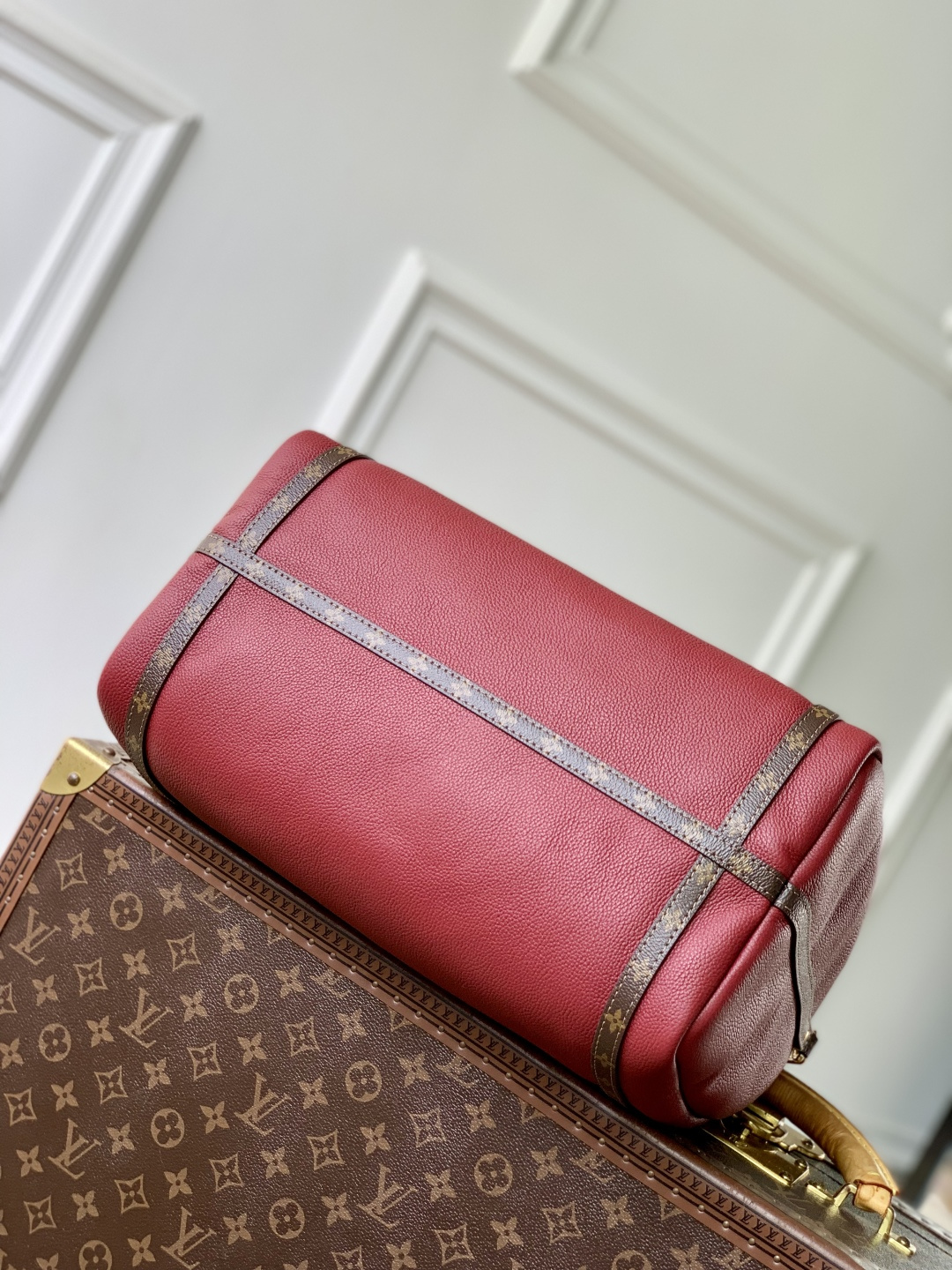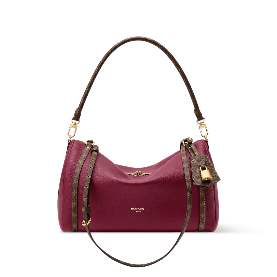 This is a replica LOUIS VUITTON M27689 Express MM Bag. ,36 x 24 x 18.5 cm ,Carmine Red,Calfskin,Coated canvas trim,Monogram cotton lining,Gold-colour finish,Double zip closure,Removable key bell with removable padlock (which can be placed on the zip pulls),Strap: Removable, adjustable,Strap Drop: 44.0 cm,Strap Drop Max: 48.0 cm,Handle: Single x2