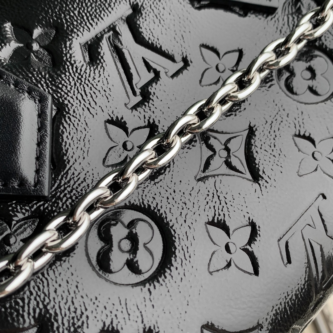 This is a replica LOUIS VUITTON M27921 Speedy Trunk 20. ,20.5 x 13.5 x 11 cm ,Black,Calfskin,Cowhide leather trim,Microfibre lining,Silver-colour hardware,1 padlock,1 inside flat pocket,Strap: Removable, adjustable,Strap Drop: 48.0 cm,Strap Drop Max: 53.0 cm,Chain: Removable,Chain Drop: 13.0 cm,Handle: Single x2