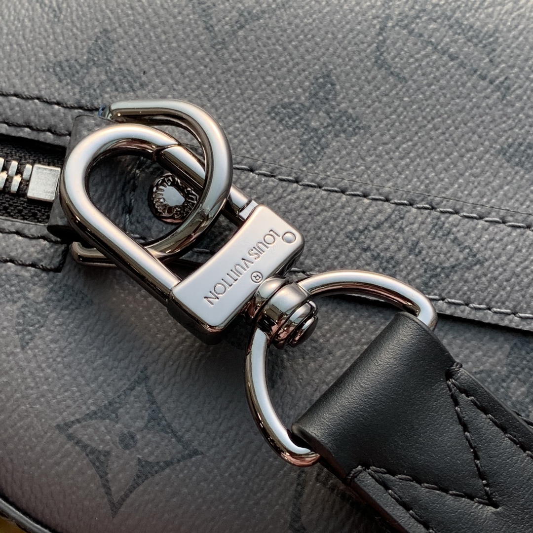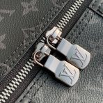 This is a replica LOUIS VUITTON M45936 City Keepall. ,27 x 17 x 13 cm ,Monogram Eclipse and Monogram Eclipse Reverse coated canvas,Cowhide leather trim,Textile lining,Black hardware,Double zipped closure,Large main compartment,Removable name tag,Strap: Removable, adjustable,Strap Drop: 45.0 cm,Strap Drop Max: 56.0 cm