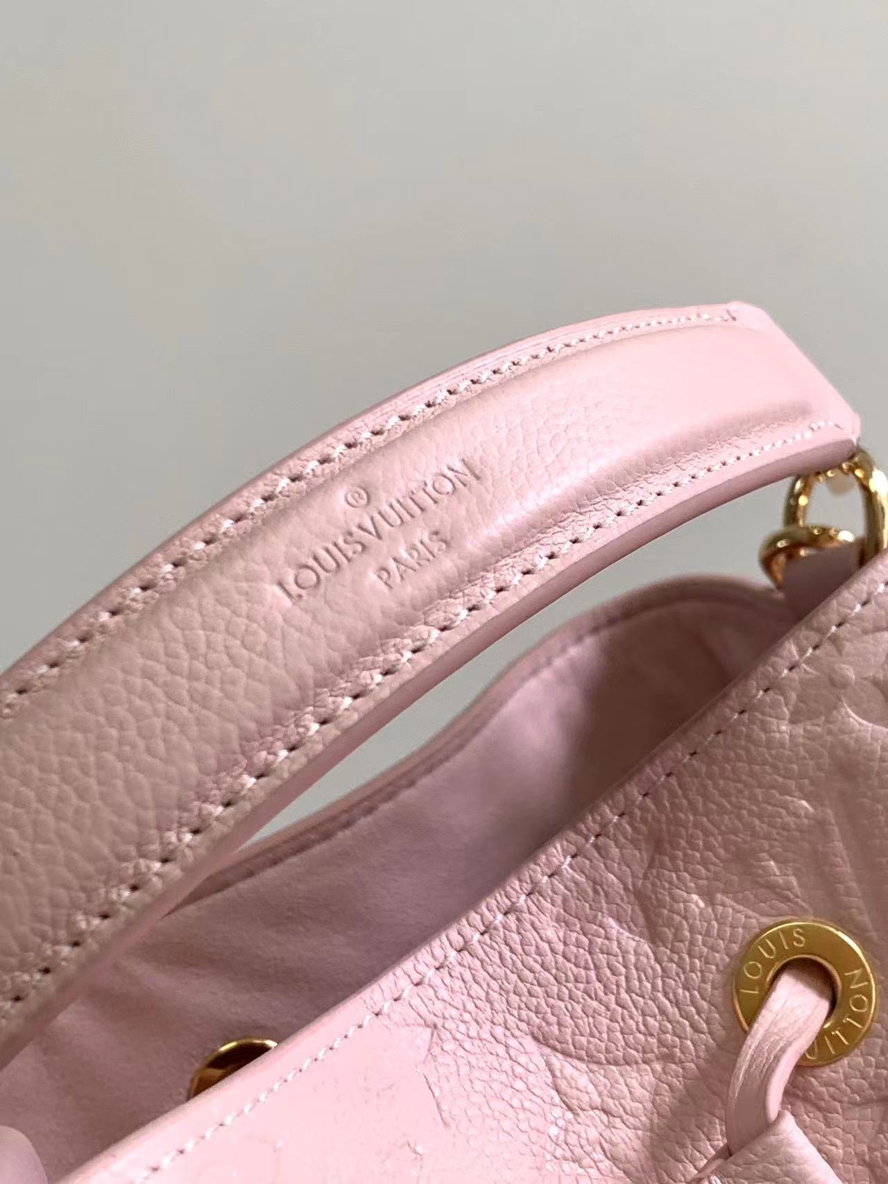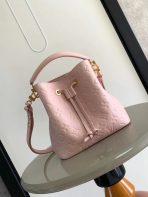 This is a replica LOUIS VUITTON M47038 Néonoé BB. ,7.9 x 7.9 x 5.1 inches ,Opal Pink,Monogram Empreinte embossed grained cowhide leather,Cowhide-leather trim,Microfiber lining,Gold-color hardware,Drawstring closure,Fits: Smartphone, Victorine Wallet, earphones, tissues, keys, lipstick,Weight: 0.4 kg,Strap:Removable, adjustable,Strap drop:13.0 inches,Strap drop max:22.0 inches,Handle:Single, removable