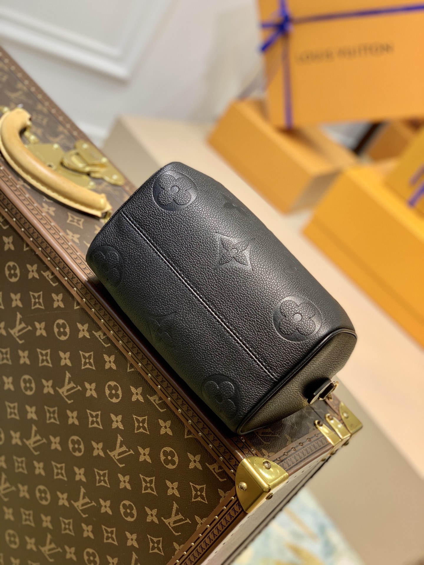 This is a replica LOUIS VUITTON M58953 Speedy Bandoulière 20. ,8.1 x 5.3 x 4.7 inches ,Black,Embossed grained cowhide leather,Cowhide-leather trim,Microfiber lining,Gold-color hardware,Double zip closure,Inside flat pocket,Padlock,Fits: 6.7-inches smartphone, Lou Compact Wallet, keys, tissues, book, sunglasses, lipstick,Strap:Removable, adjustable,Strap drop:19.3 inches,Strap drop max:21.3 inches,Handle:Double