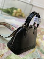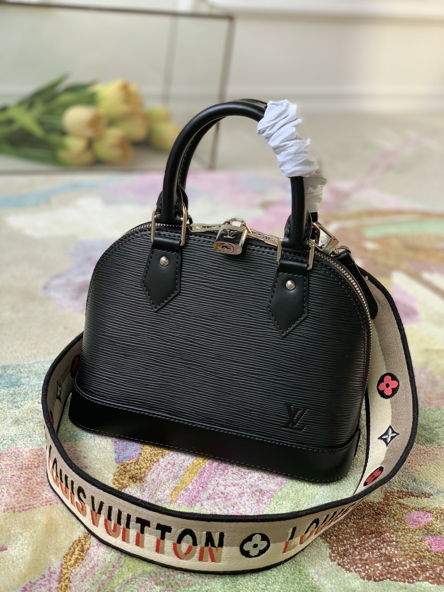 This is a replica LOUIS VUITTON M59217 ,9.3 x 6.9 x 4.5 inches ,Black,Epi grained cowhide leather,Epi-leather trim and Jacquard strap,Microfiber lining,Silver-color hardware,Double zip closure,Padlock,Key bell,Inside flat pocket,4 protective metal bottom studs,Fits: 6.7-inches smartphone, earphones, lipstick, tissues, keys, sunglasses,Strap:Removable, not adjustable,Strap drop:19.7 inches,Handle:Double