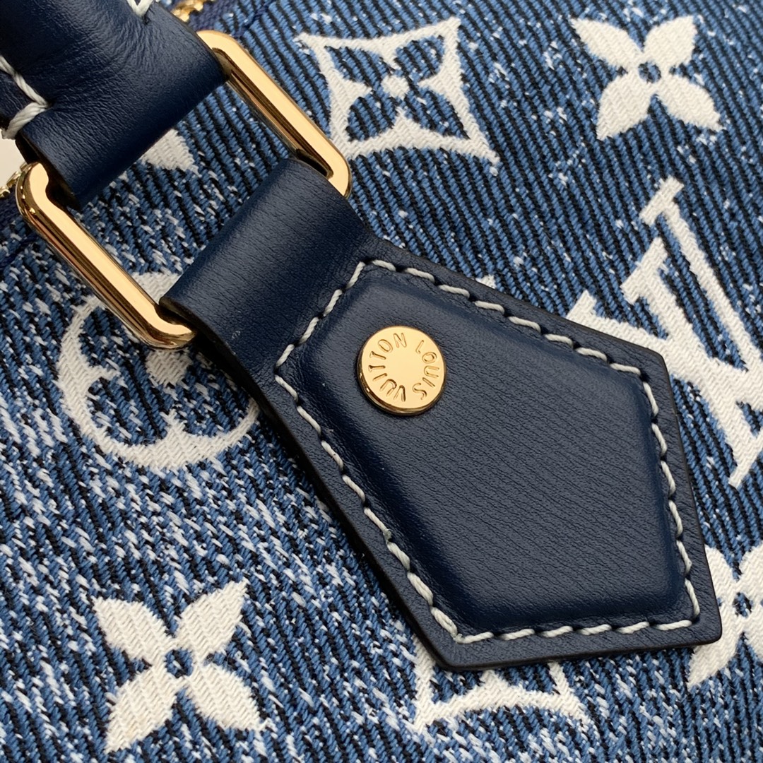 LOUIS VUITTON MASTER DENIM MONOGRAM JACQUARD SPEEDY BANDOULIERE 25 BLEU M59609 (25*19*15cm)