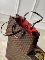 This is a replica LOUIS VUITTON N00065 OnTheGo MM. ,13.8 x 10.6 x 5.5 inches ,Damier Ebene Coated canvas,Cowhide-leather trim,Textile lining,Gold-toned hardware,1 inside flat zipped pocket,2 interior long shoulder handles,4 riveted corner table,1 hook closure,Fits: 13-inch laptop, smartphone, keys, Zippy wallet, earphones,Handle:Double