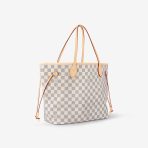 This is a replica LOUIS VUITTON N40604 Neverfull MM. ,12.2 x 11 x 5.5 inches ,Beige,Damier Azur coated canvas,Natural cowhide-leather trim,Striped textile lining,Gold-color hardware,4 side laces,Hook closure,Flat, textile-lined zipped inside pocket,Removable zipped pouch,D-ring,Fits: 13-inch laptop, smartphone, keys, Zippy Long Wallet,Handle:Double