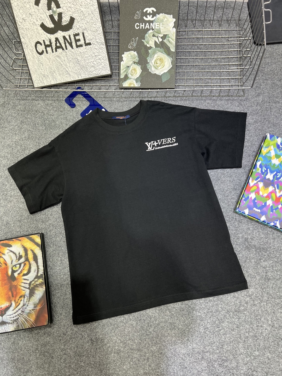 Be the first to review “Lv monogram flocked print back logo cotton t-shirt”