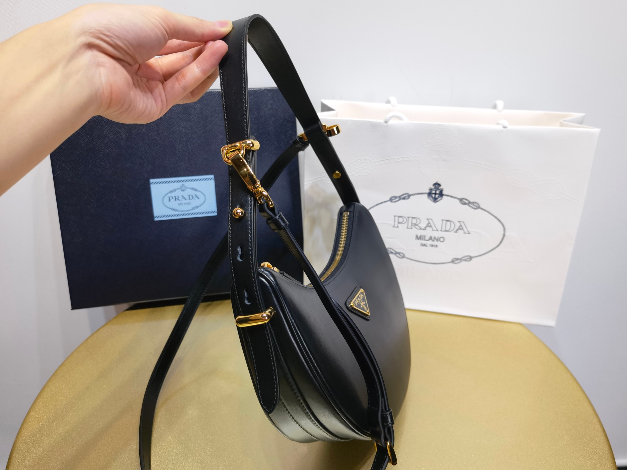 Prada 1BC194 Arqué leather small shoulder bag 1