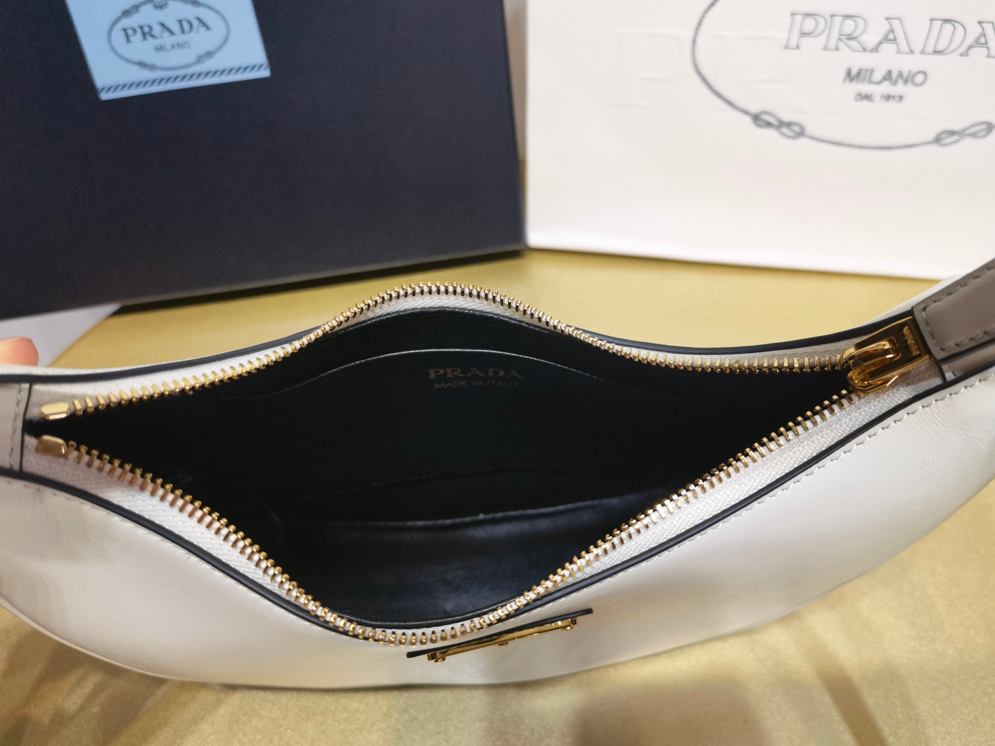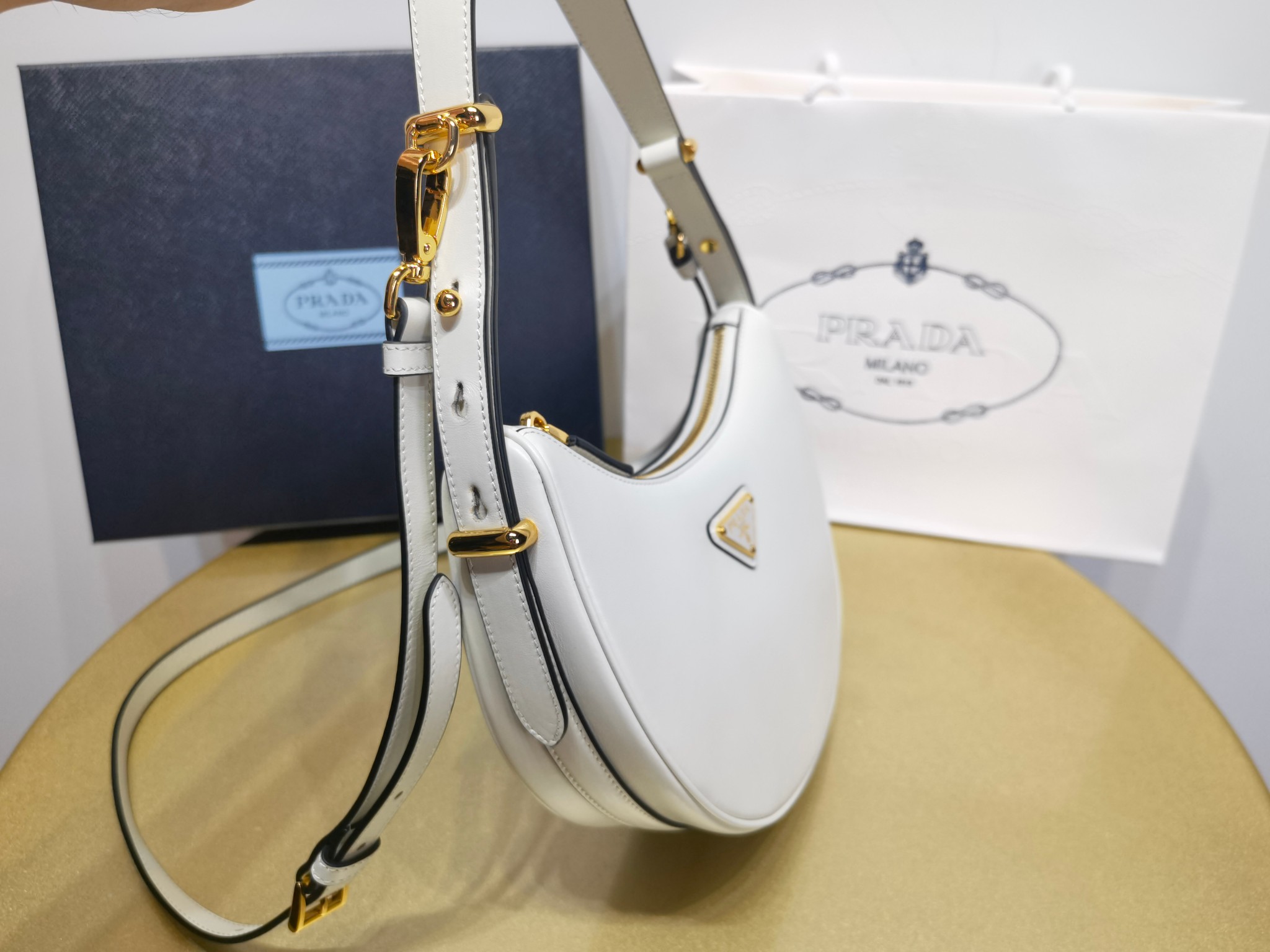 This is a replica Prada 1BC194 Arqué leather small shoulder bag. ,Detachable, adjustable leather handle,Detachable, adjustable leather shoulder strap. Max. length: 93 cm – Min. length: 83 cm – Max. drop length: 60 cm – Min. drop length: 55 cm,Metal hardware,Enameled metal triangle logo on the front,Zipper closure,Nappa leather interior with patch pocket,Height: 18.5cm,Width: 22.5cm,Length: 6cm