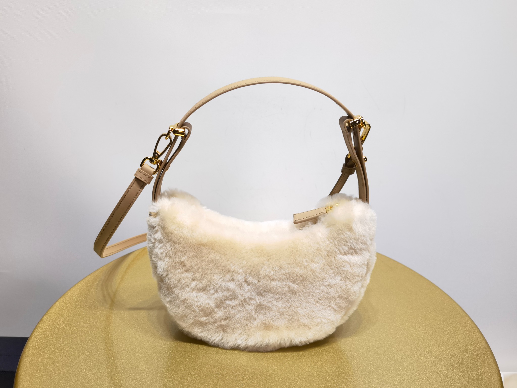 Prada 1BC194 Arqué small shearling and leather shoulder bag