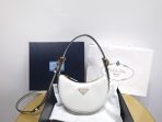 This is a replica Prada 1BC199 Arqué leather mini shoulder bag. ,Detachable, adjustable leather handle,Detachable, adjustable leather shoulder strap Maximum length: 93 cm – Minimum length: 83 cm – Maximum drop length: 60 cm – Minimum drop length: 55 cm,Metal hardware,Enameled metal triangle logo on the front,Zipper closure,Nappa leather lining with patch pocket,Height: 16cm,Width: 18cm,Length: 5cm