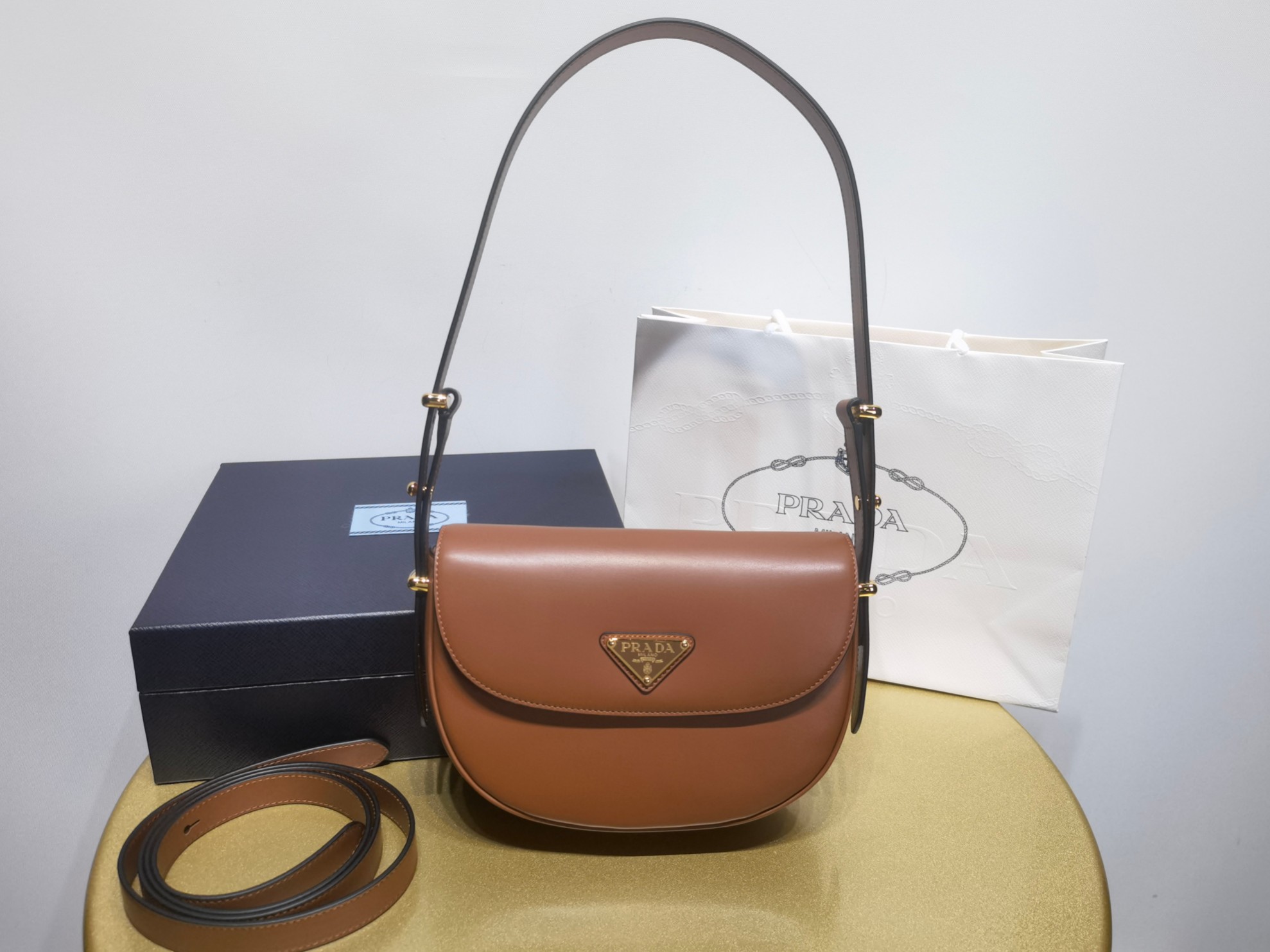 This is a replica Prada Prada 1BD365 Arqué leather shoulder bag with flap. ,Leather handle with extension for cross-body use,Extendible shoulder strap Maximum length 122 cm – Minimum length 56 cm – Maximum drop 56 cm – Minimum drop 23 cm,Metal hardware,Enameled metal triangle logo on the flap,Magnetic closure on the flap,Nappa leather interior with patch pocket,