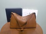 This is a replica Prada Aimée 1BC228 large leather shoulder bag. ,With adjustable leather handles. Minimum drop 38 cm – Maximum drop 28 cm,Detachable keychain,Metal hardware accessories,Enameled metal triangle logo on the front,Zipper closure,Nappa leather lining with two interior pockets, one with zipper,