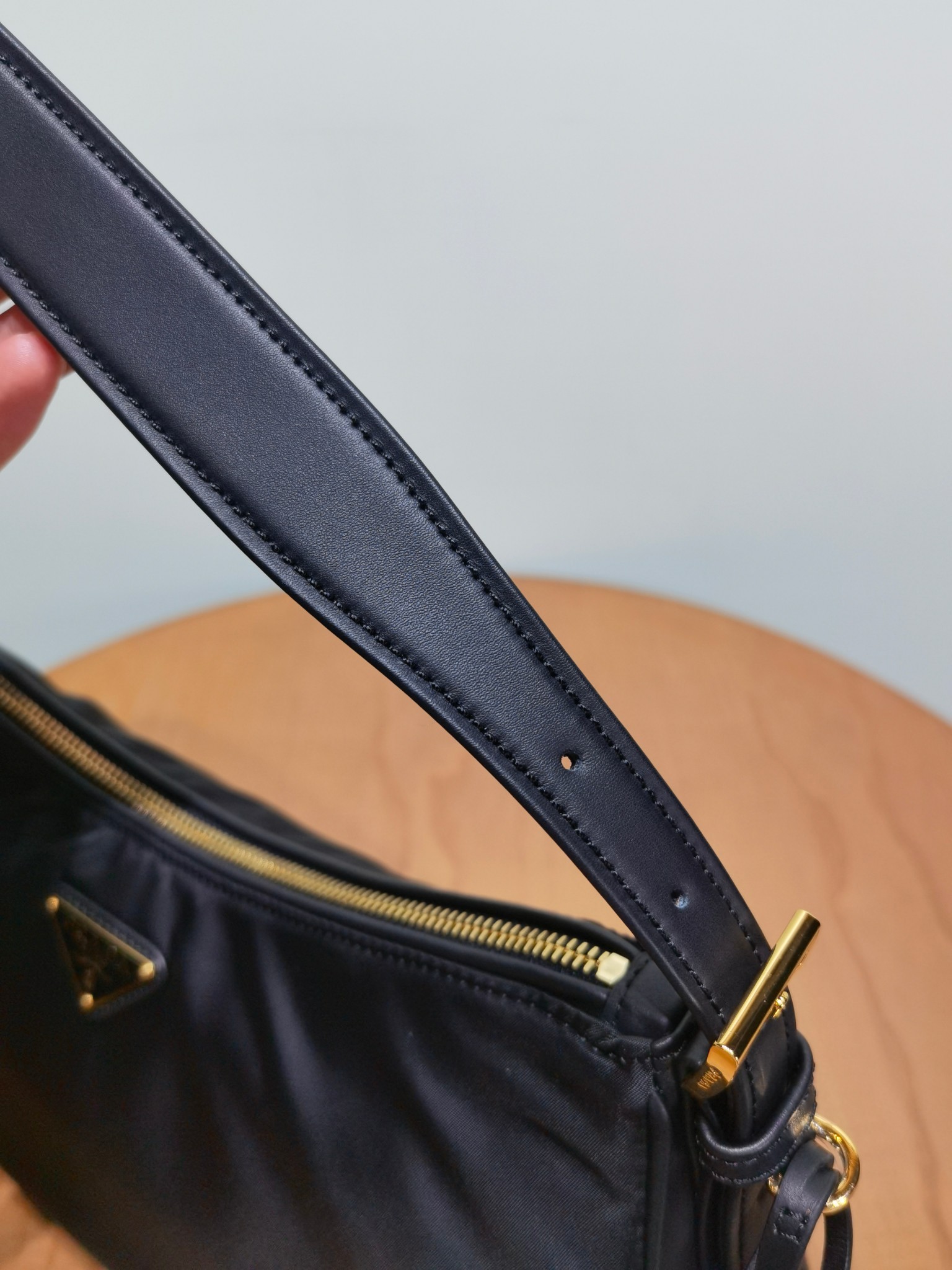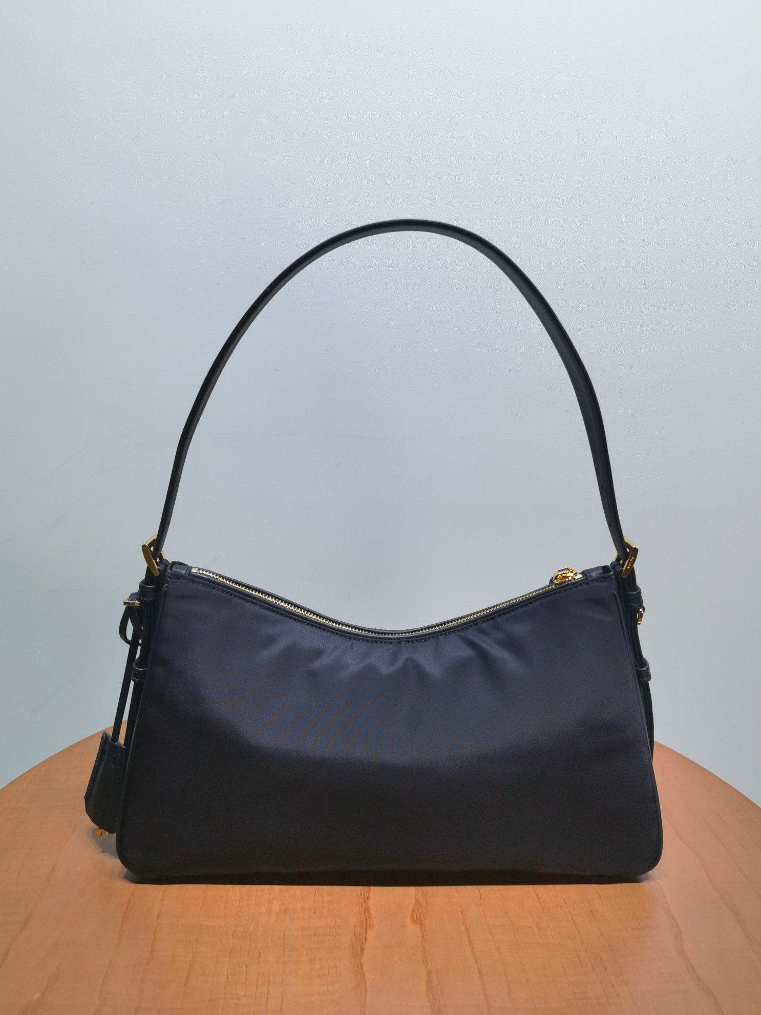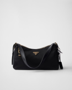 Prada Aimée 1BC232 Large Recycled Nylon and Leather Shoulder Bag with Padlock