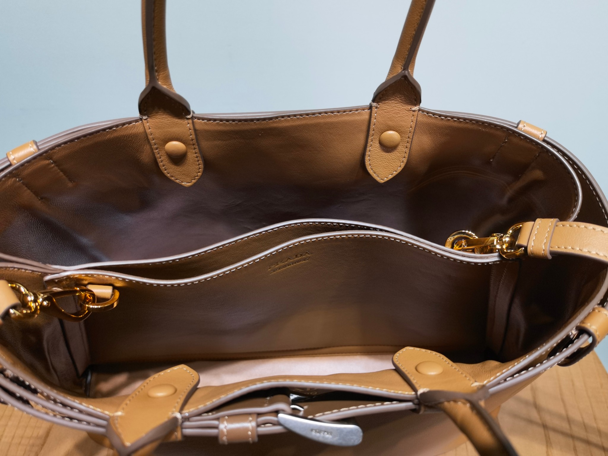 Prada Buckle 1BA416 Large Leather Drawstring Bag 1