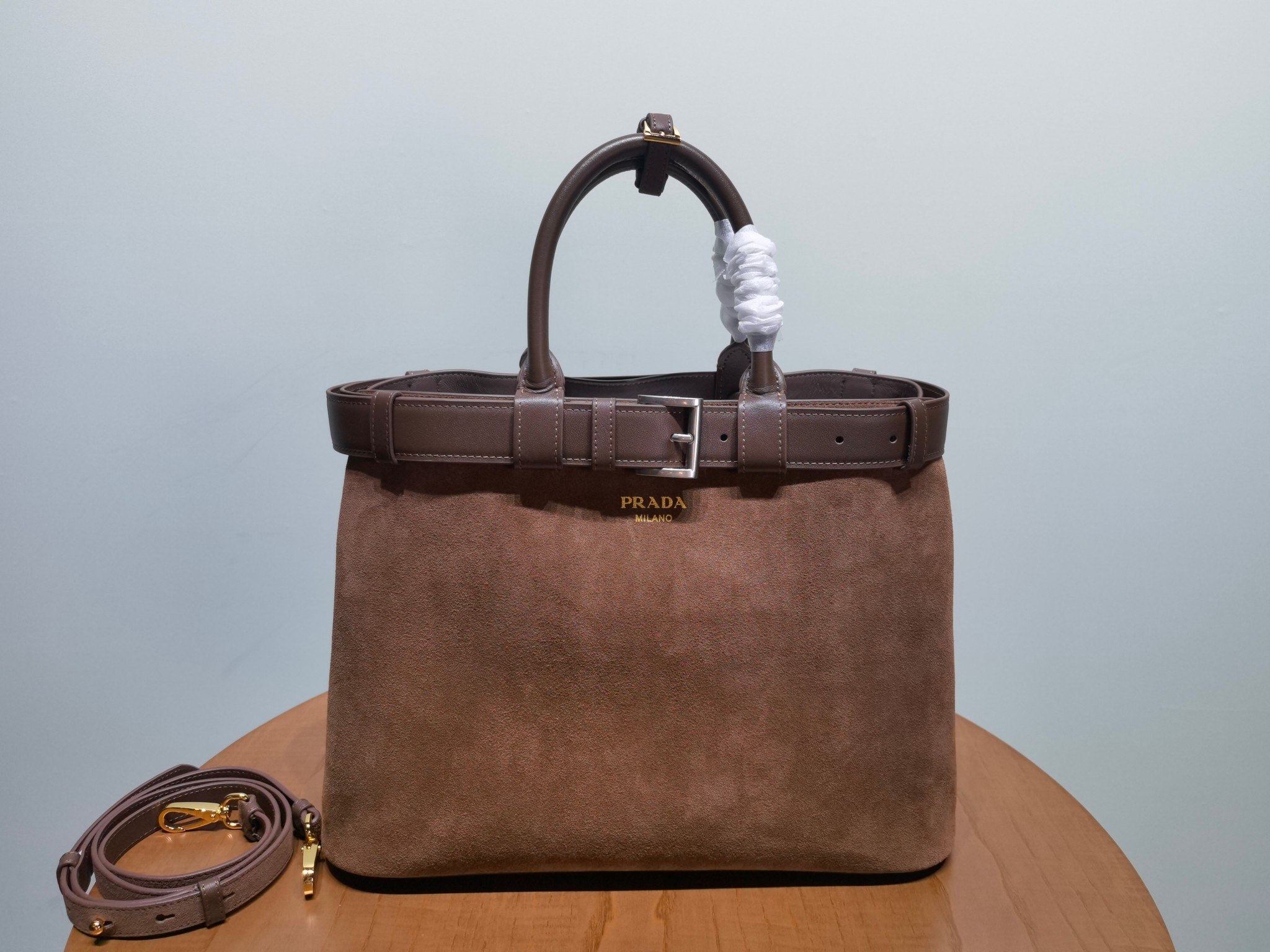 This is a replica Prada Buckle 1BA416 Large Leather Drawstring Bag. ,Buckle-decorated straps,Leather handle,Removable and adjustable leather shoulder strap Maximum length 110 cm – Minimum length 100 cm – Maximum drop 55 cm – Minimum drop 50 cm,Metal hardware accessories,Leather front with embossed logo lettering,Nappa leather interior with middle pocket,