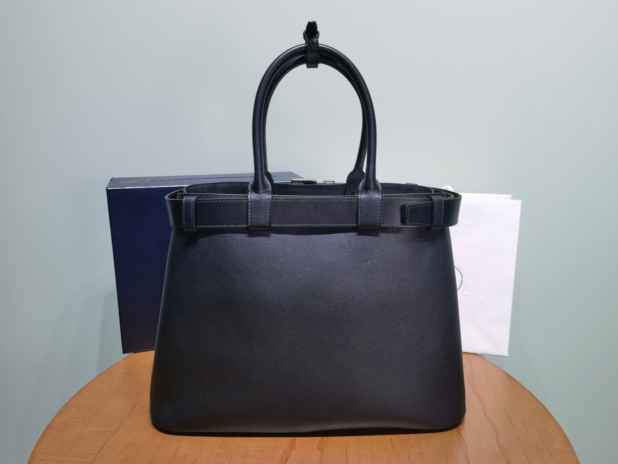 Prada Buckle 1BA416 Large Leather Drawstring Bag 2