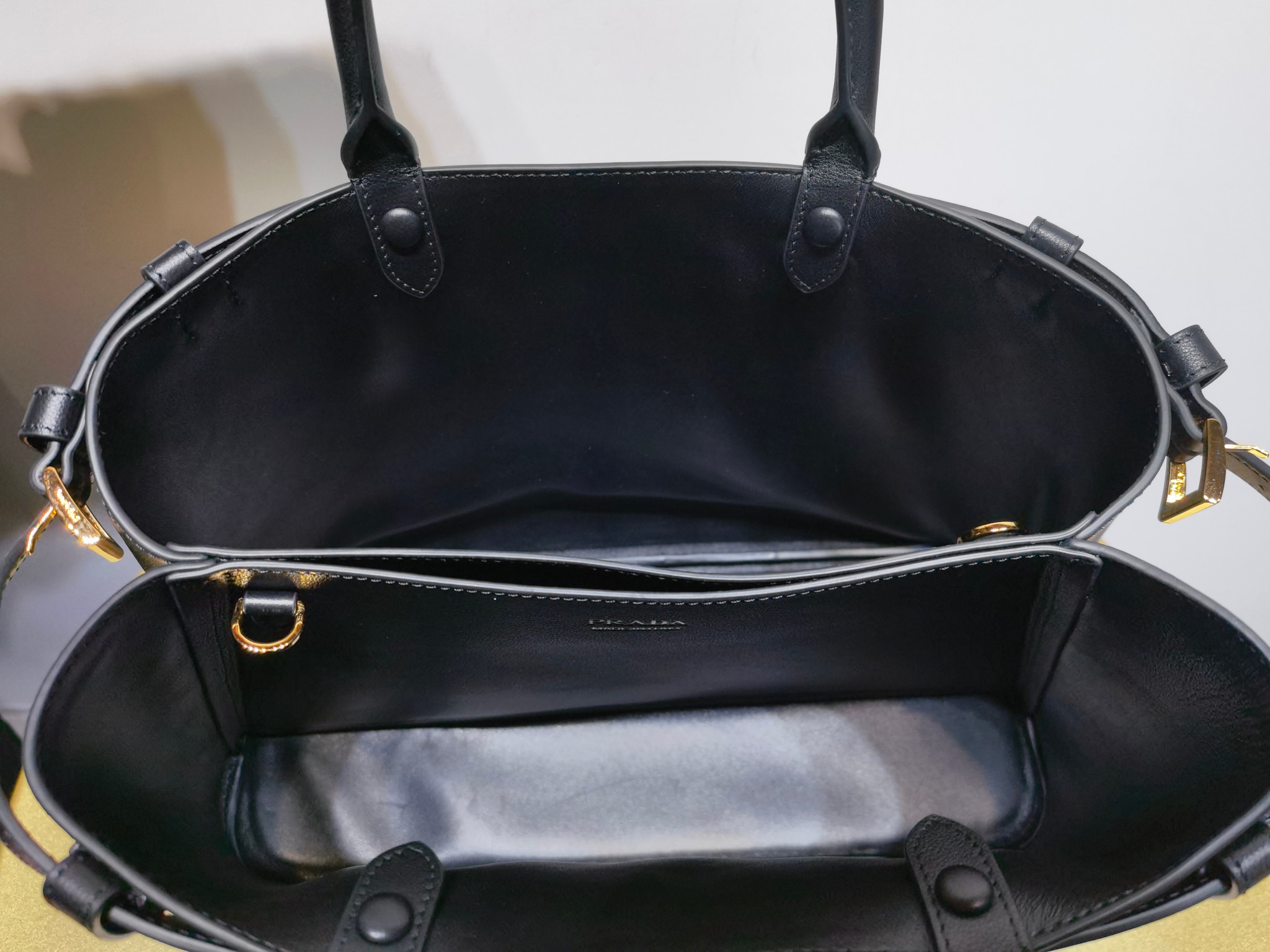 This is a replica Prada Buckle 1BA417 Medium Leather Drawstring Bag. ,Decorative buckle strap,Leather handle,Removable and adjustable leather shoulder strap Maximum length 110 cm – Minimum length 100 cm – Maximum drop 55 cm – Minimum drop 50 cm,Metal hardware accessories,Front printed lettering logo,Nappa leather lining with middle pocket,