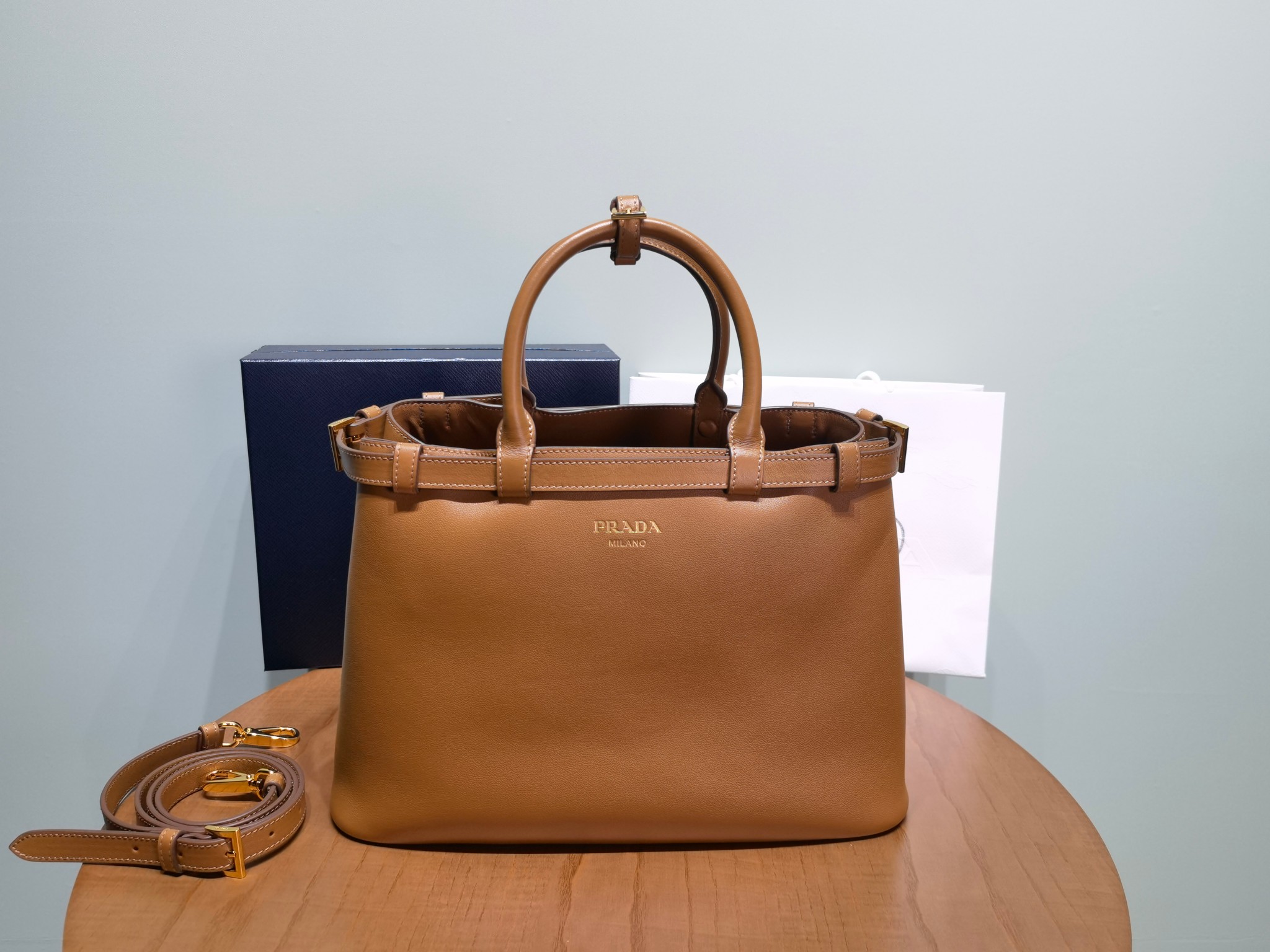Prada Buckle 1BA417 Medium Leather Drawstring Bag 2