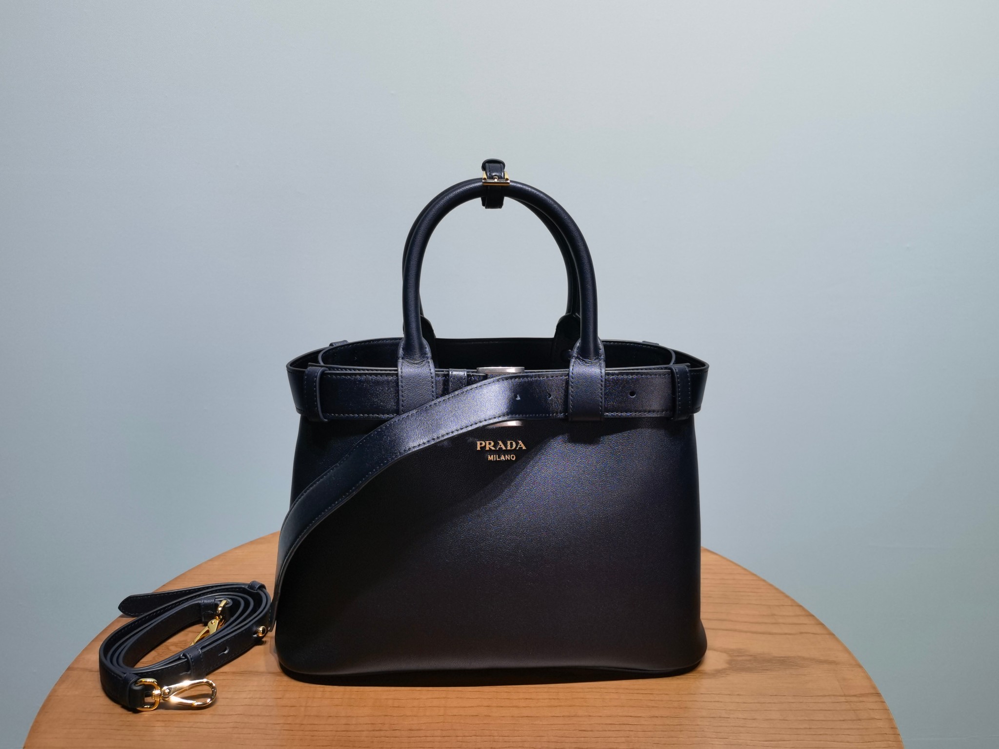 Prada Buckle 1BA434 Small Leather Drawstring Bag 1