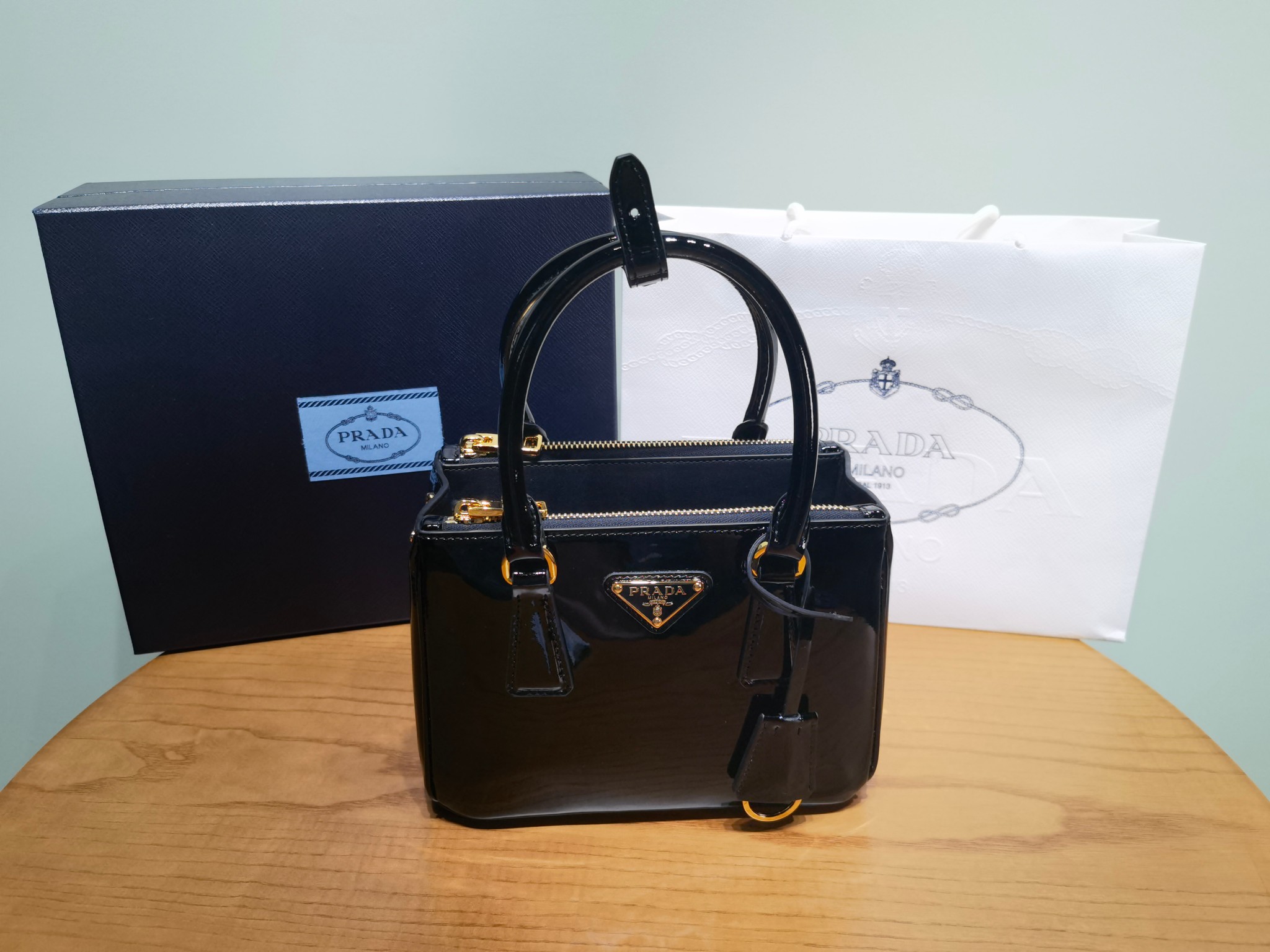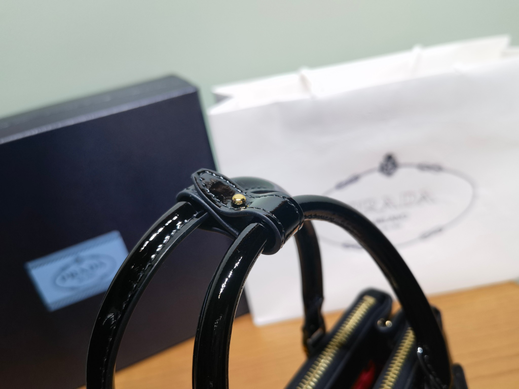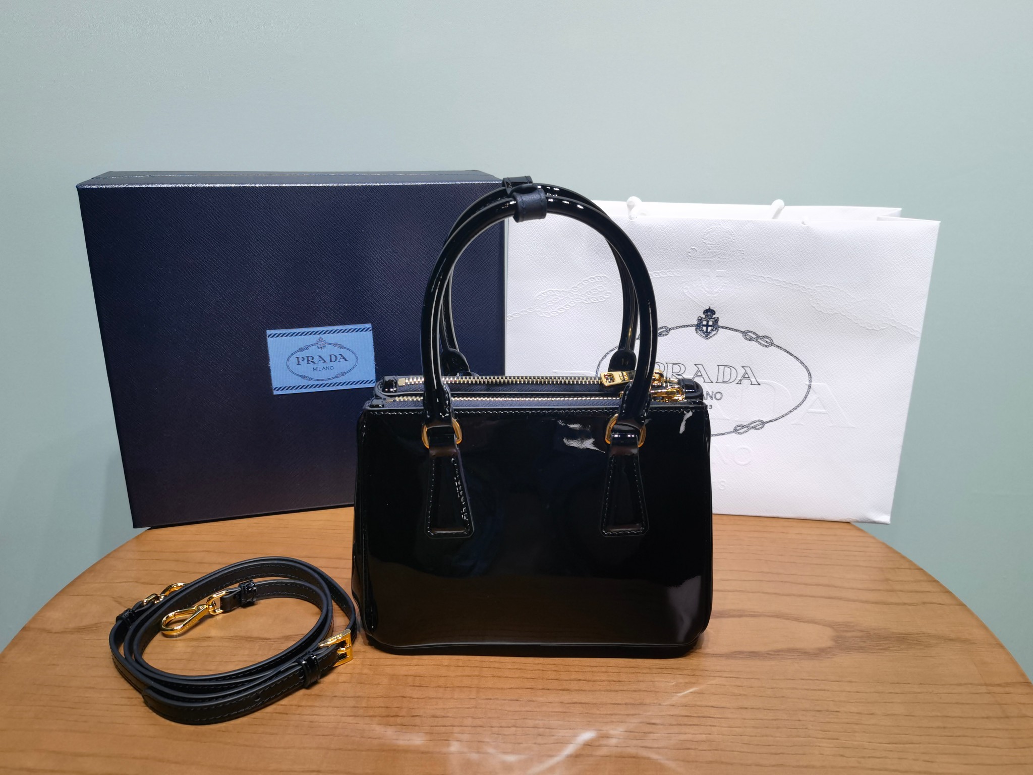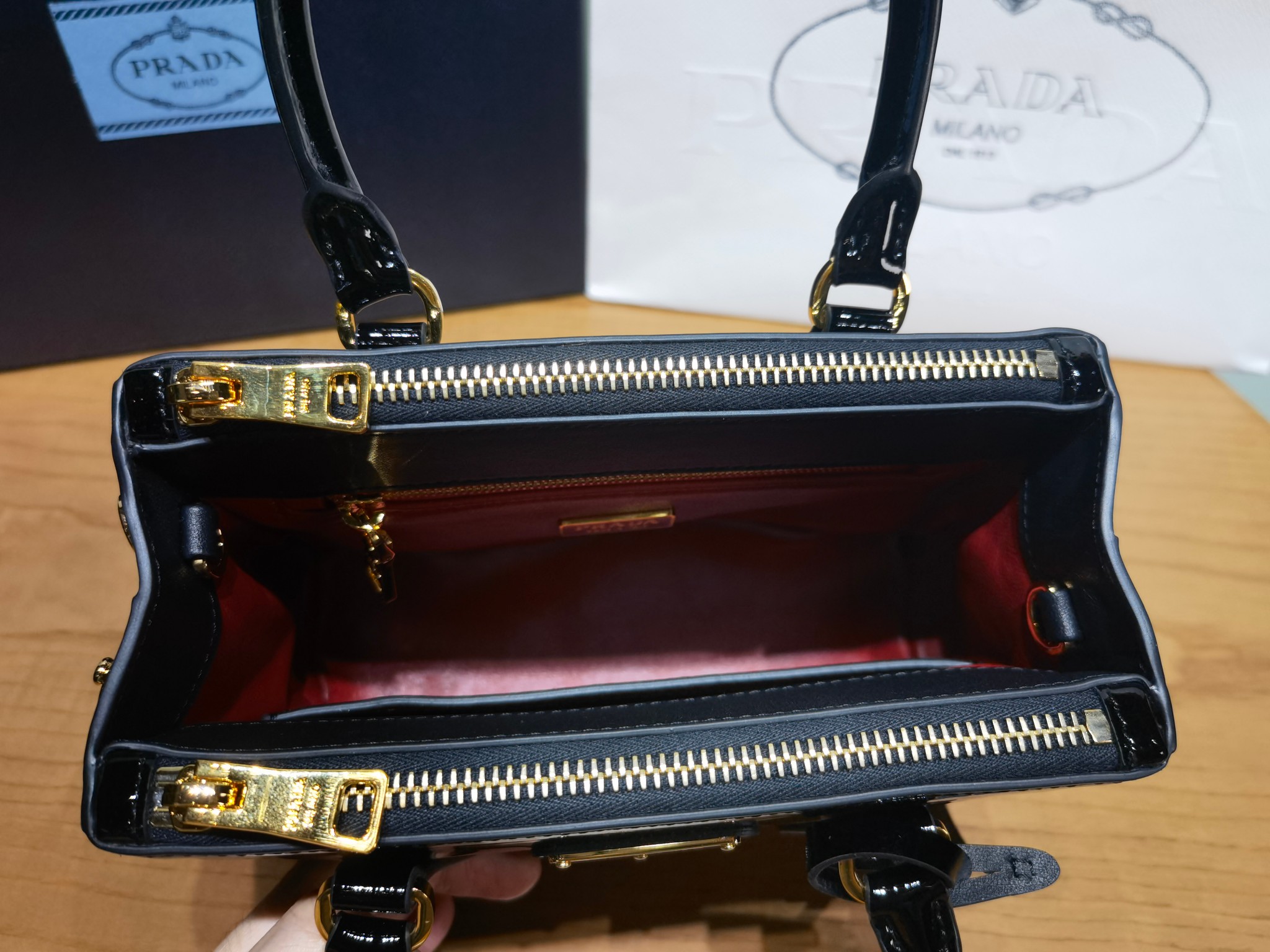 This is a replica Prada Galleria 1BA906 Saffiano leather mini-bag. ,Leather handles,Detachable, adjustable leather shoulder strap. Max. length: 120 cm – Min. length: 110 cm – Max. drop length: 60 cm – Min. drop length: 55 cm,Removable leather key ring,External zipper pockets,Metal hardware,Leather triangle with metal lettering logo on the front,Snap closure on the sides,Logo-print nylon lining with two pockets, including one with zipper,With purse feet,Height: 14.5cm,Width: 20cm,Length: 9.5cm