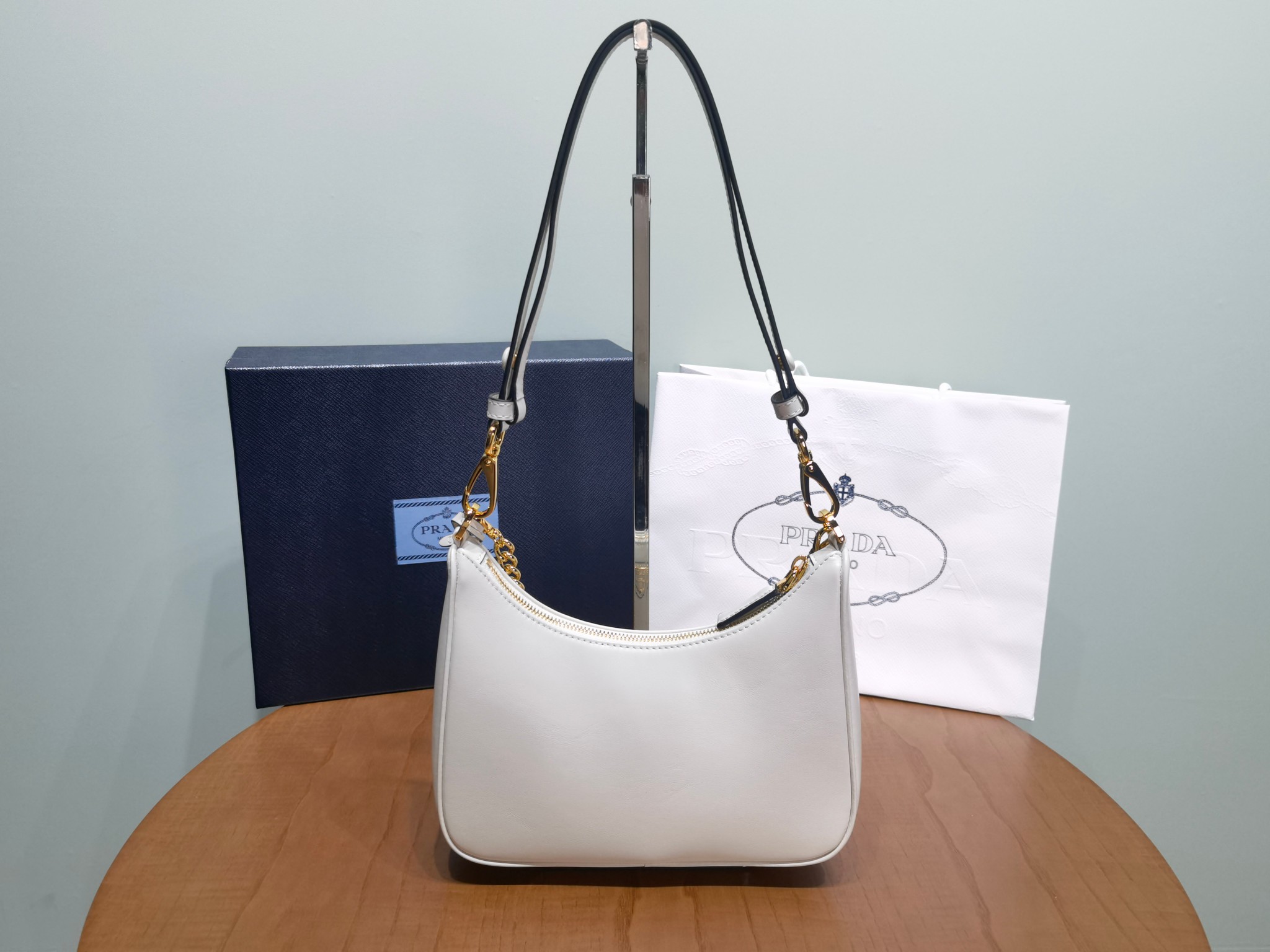 This is a replica Prada Re-Edition 1BC204 leather mini-bag. ,Detachable, adjustable chain and leather handle,Removable leather key ring,Metal hardware,Enameled metal triangle logo on the front,Zipper closure,Logo-print nylon lining,Height: 18cm,Width: 22cm,Length: 6cm