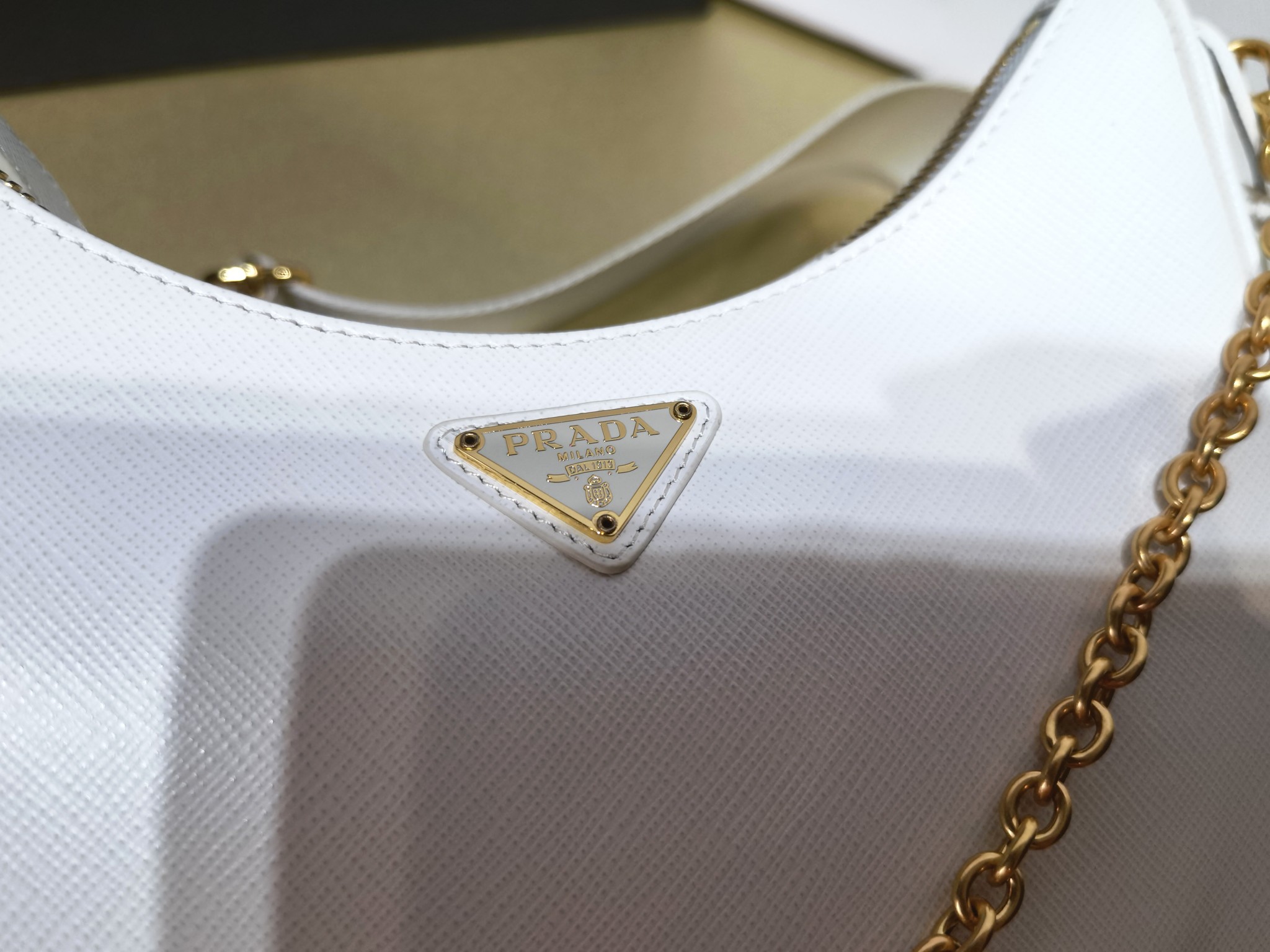 This is a replica Prada Re-Edition 1BH204 2005 Saffiano leather bag. ,Saffiano leather,Detachable chain handle,Detachable adjustable 85 cm logo-print woven nylon shoulder strap,Detachable leather pouch with zipper closure and Re-Edition keychain,Metal hardware,Enameled metal triangle logo on the front,Zipper closure,Prada logo nylon lining,Height: 18cm,Width: 22cm,Length: 6cm