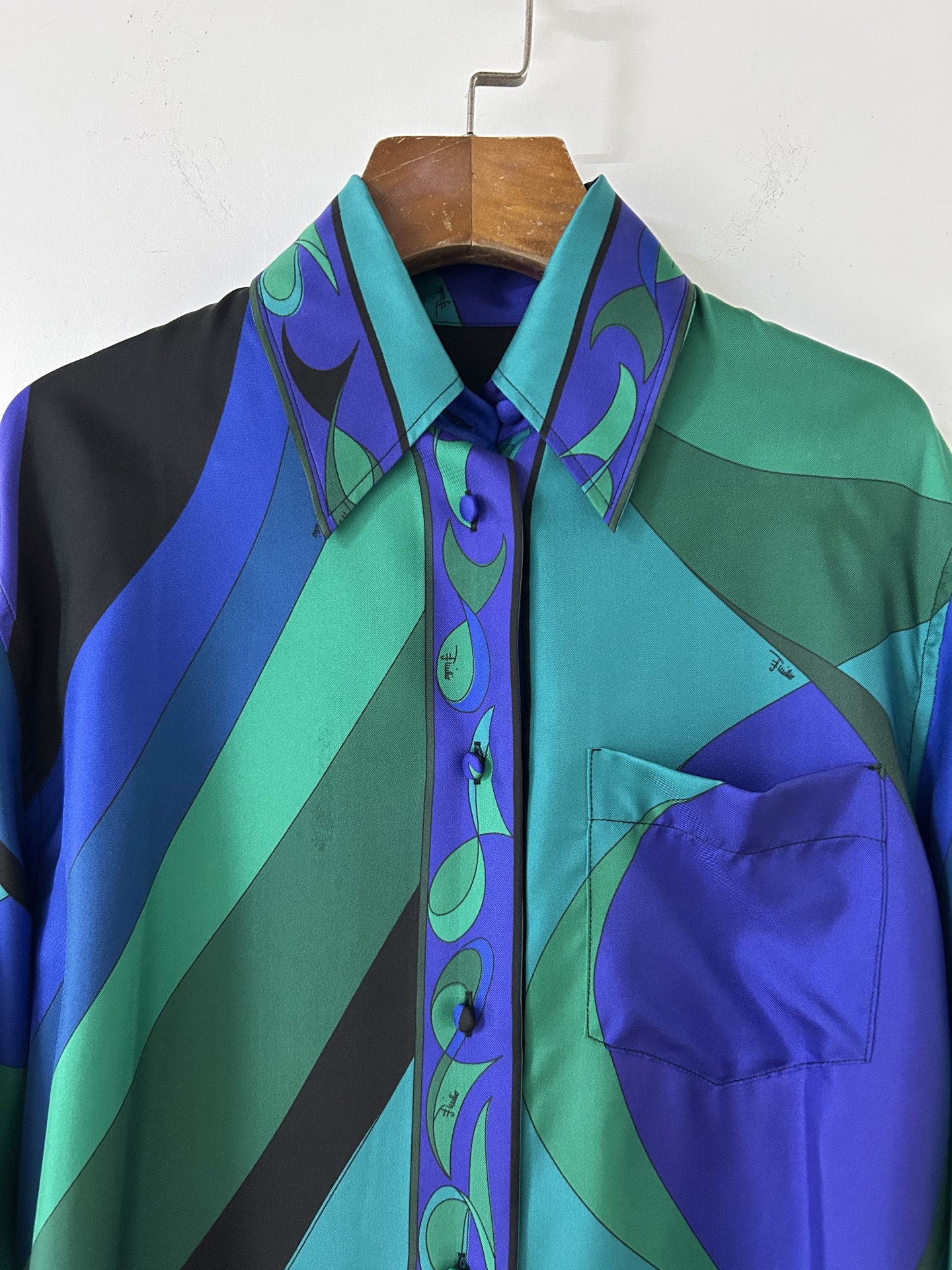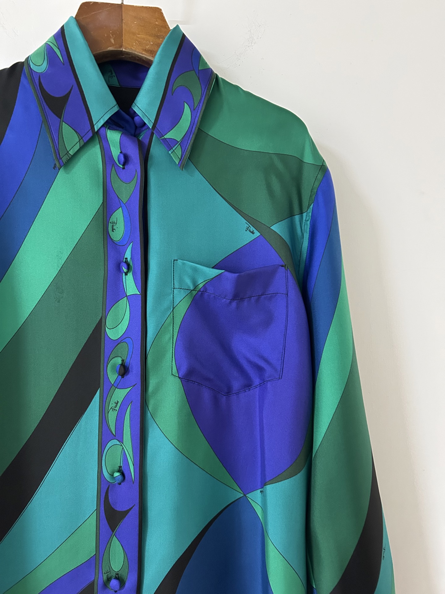 Be the first to review “PUCCI emerald green geometric print silk shirt 333332”