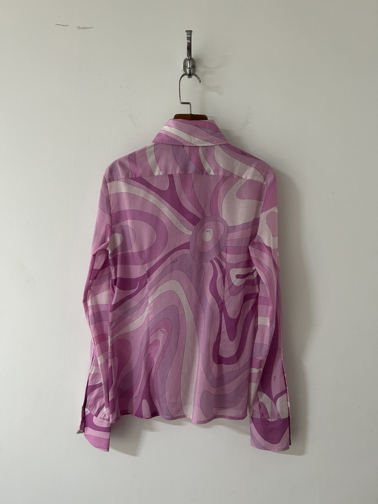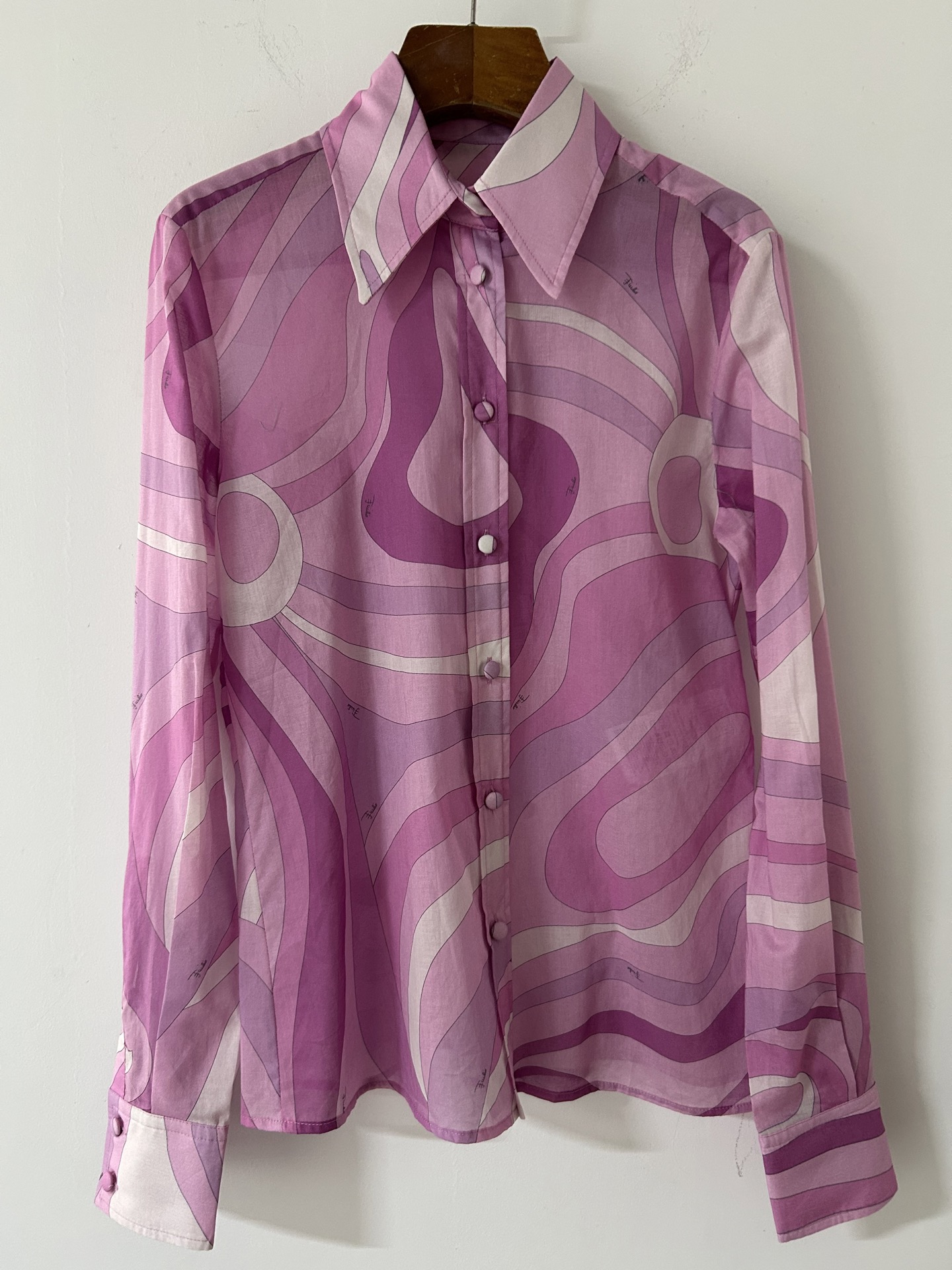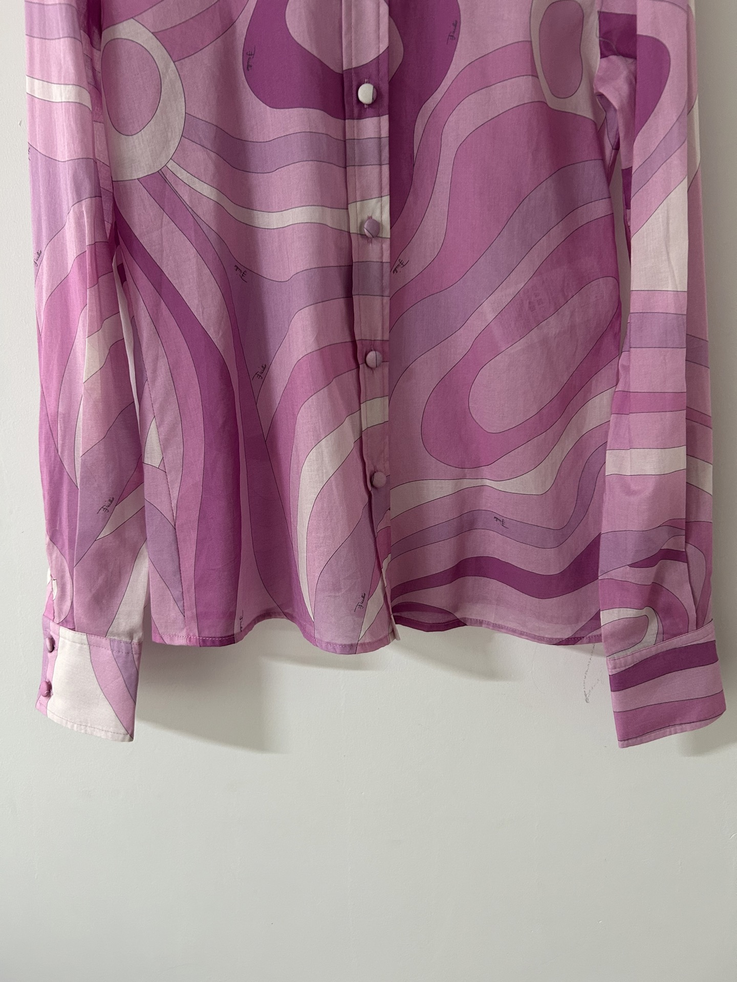 PUCCI pink purple swirl print cotton blouse 333364