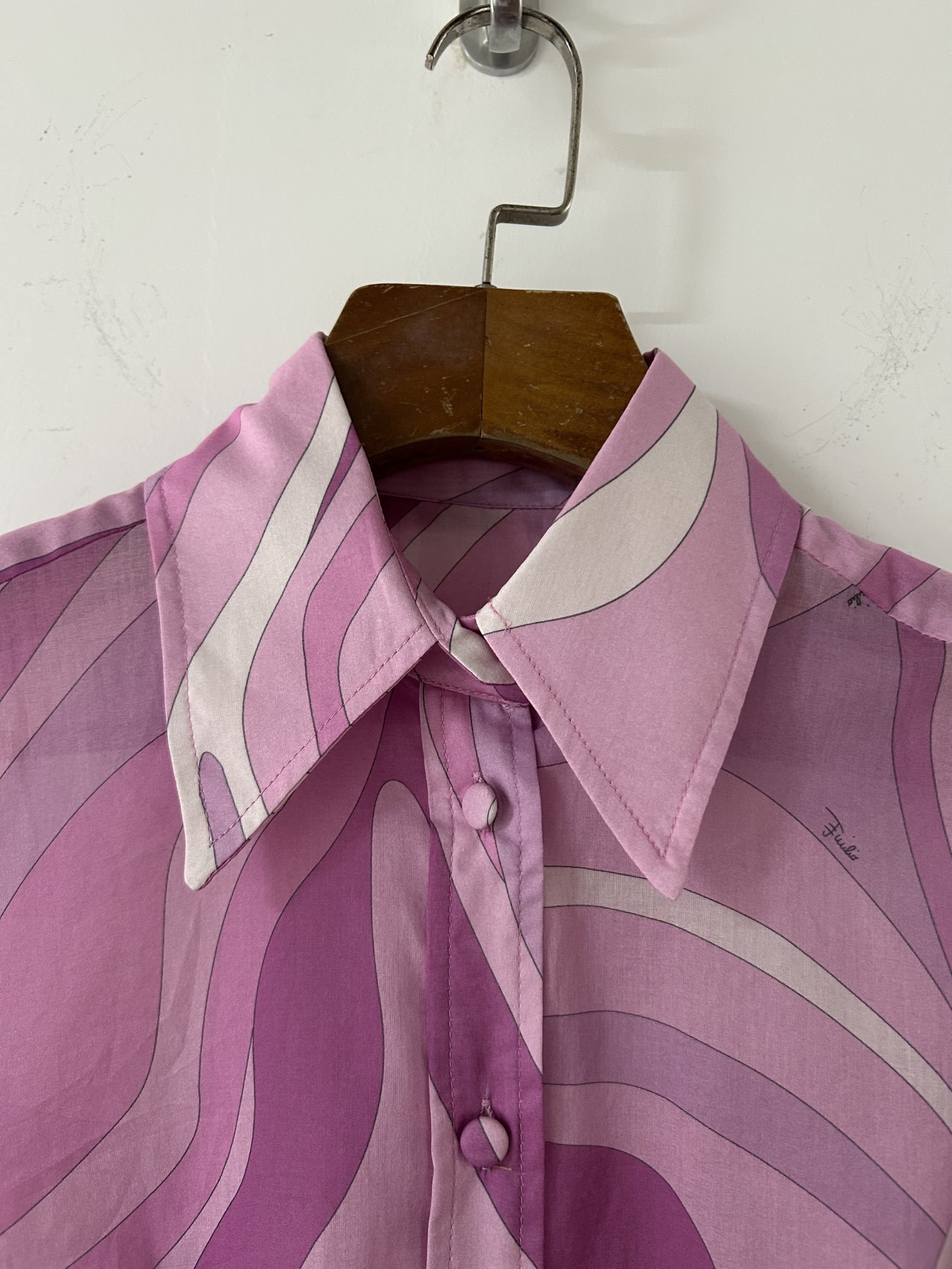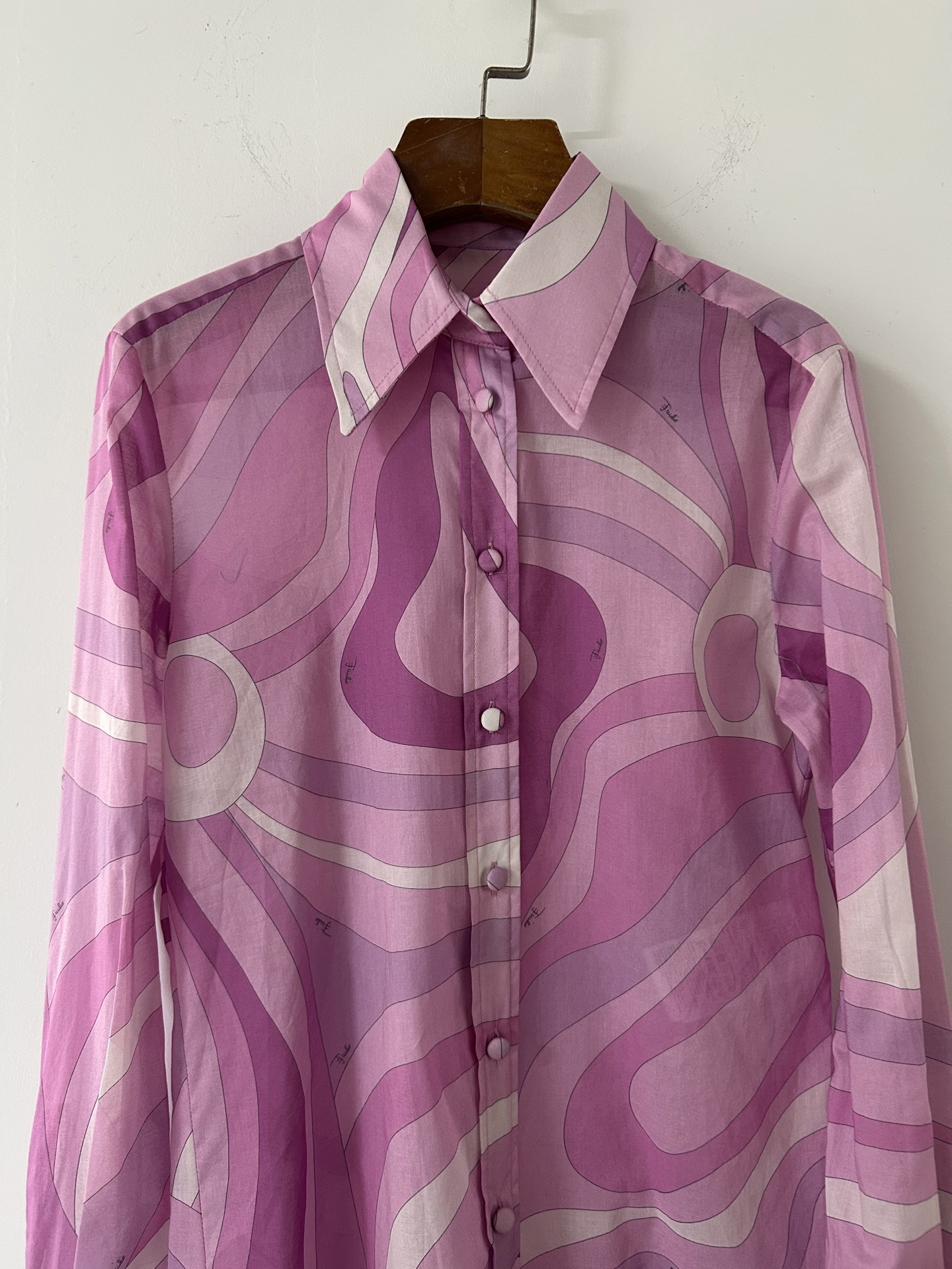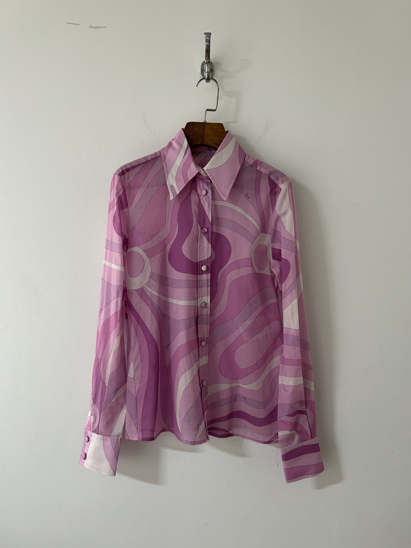 PUCCI pink purple swirl print cotton blouse 333364