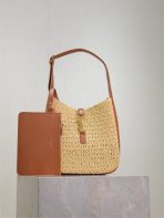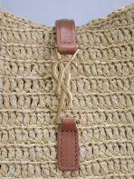 This is an replica SAINT LAURENT small version of the iconic 5 À 7 in raffia and vegetable-tanned leather.,