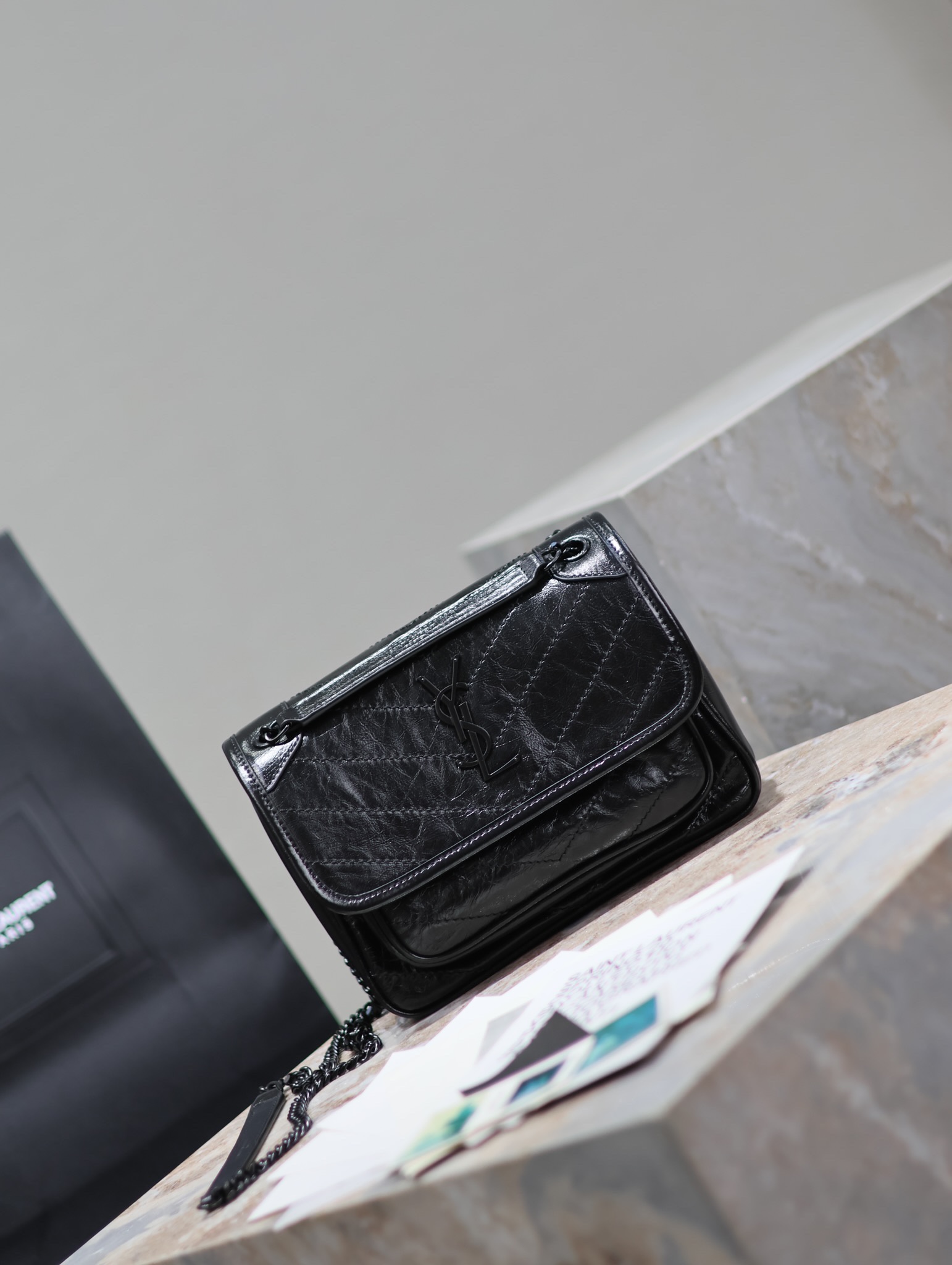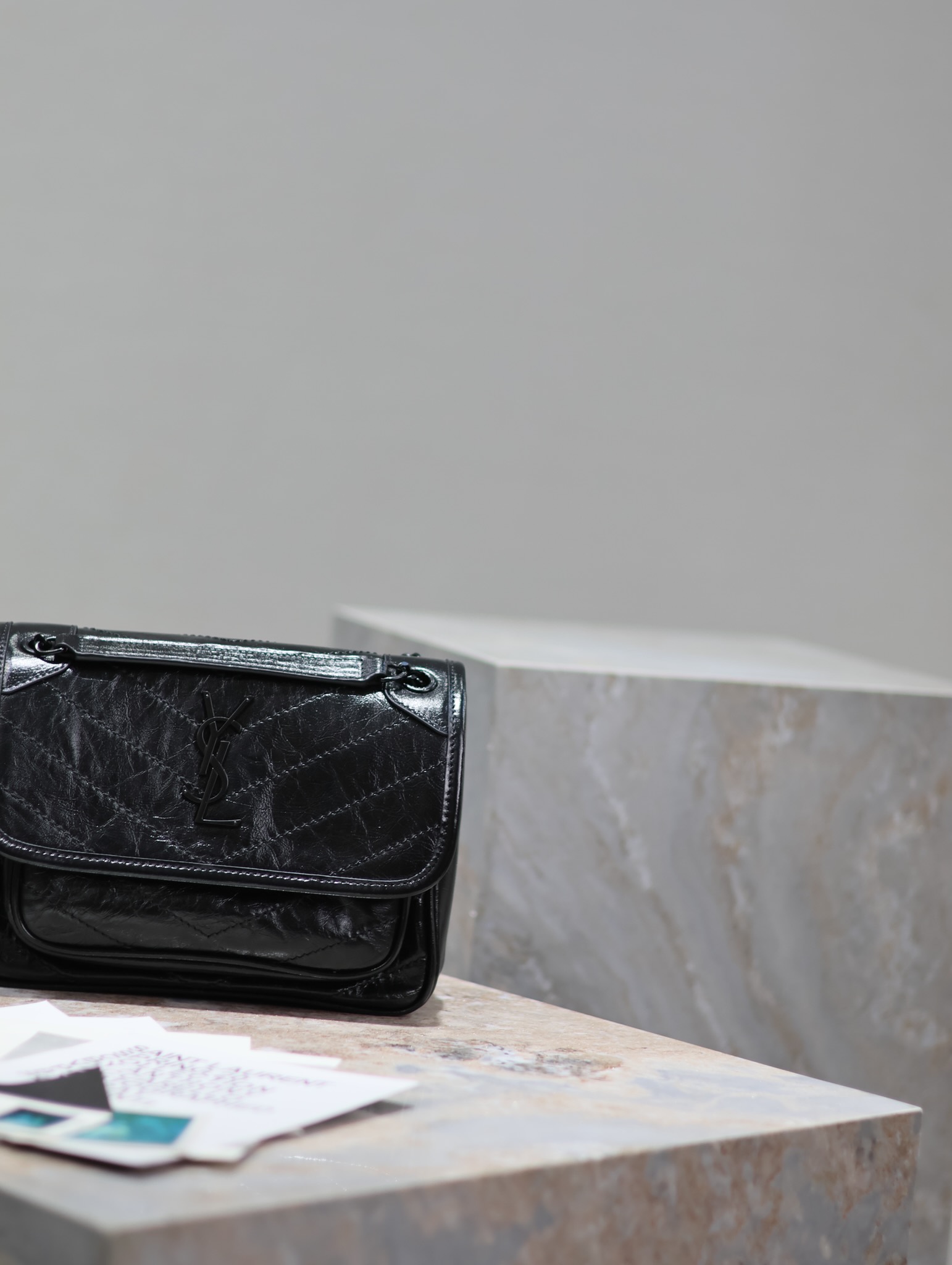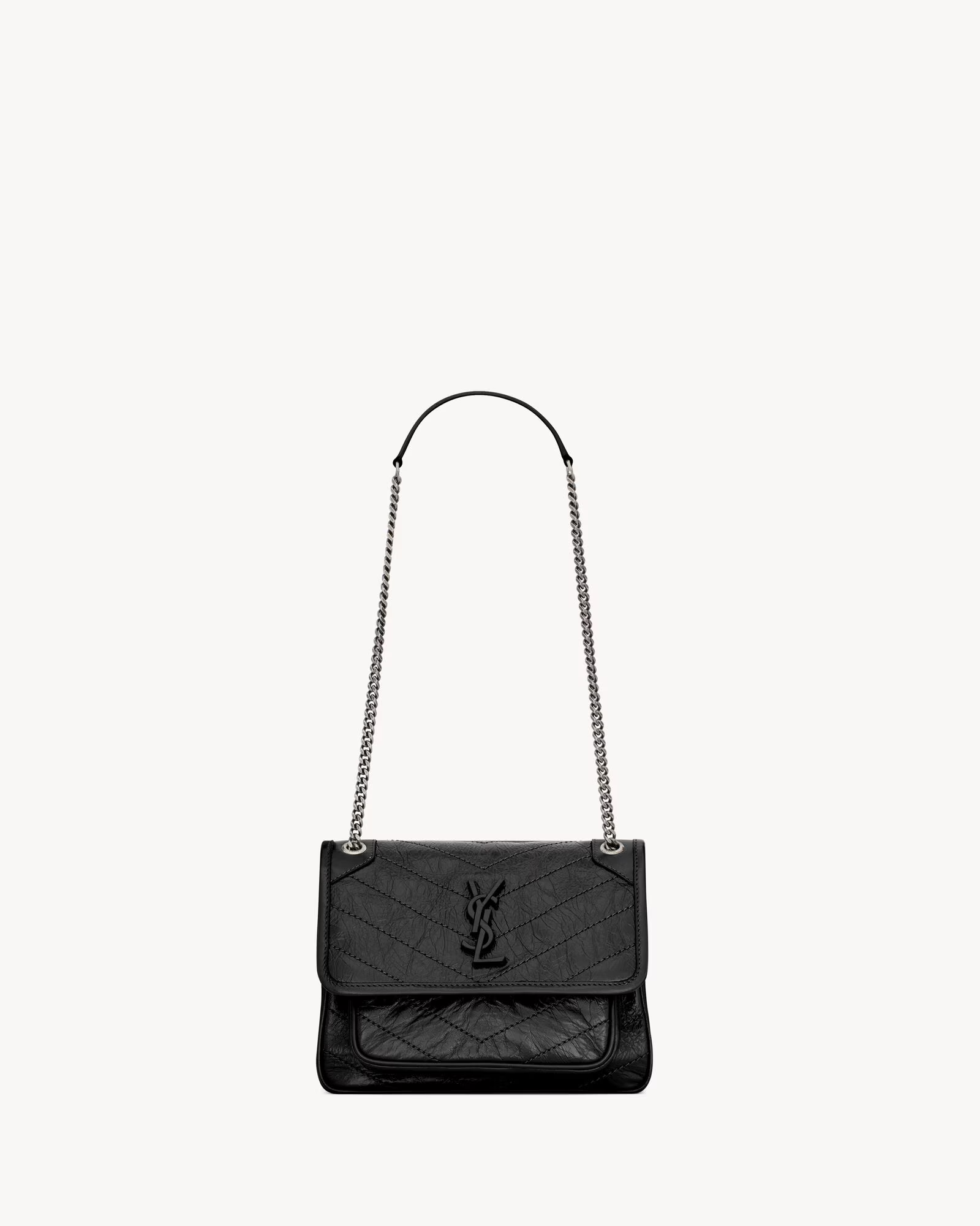 This is an replica SAINT LAURENT NIKI baby in vintage leather.,FLAP BAG IN VINTAGE CALF LEATHER, FEATURING CHEVRON QUILT OVERSTITCHING AND LEATHER-ENCASED CASSANDRE.,LIGHT, WITH TWO COMPARTMENTS AND A LARGE BACK SLOT POCKET.,FEATURES A SLIDING CHAIN STRAP THAT CAN BE WORN ON THE SHOULDER OR CROSSBODY.,