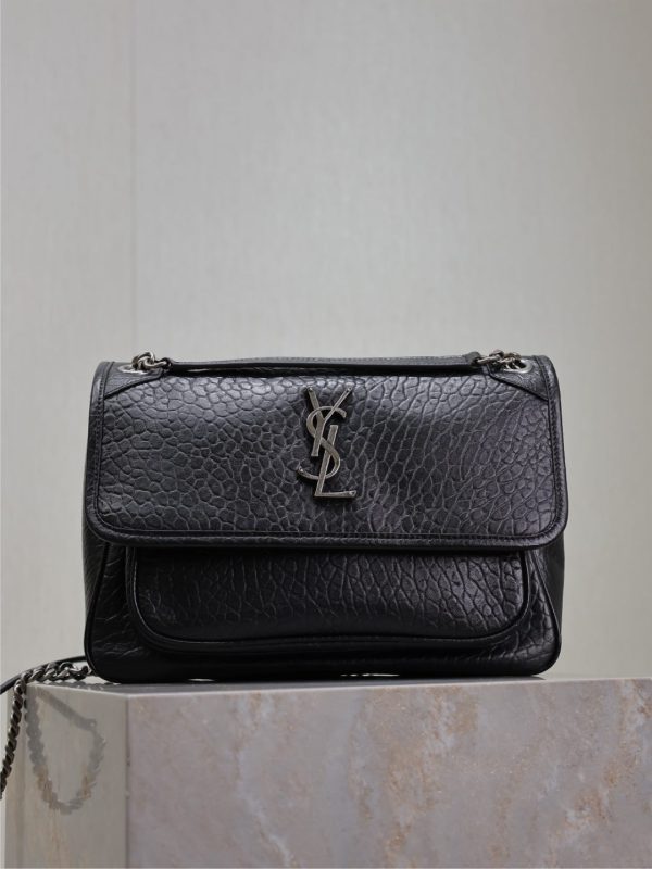 This is an replica SAINT LAURENT NIKI mini in raffia.,This practical, lightweight bag features two main compartments.,A sliding chain strap provides both shoulder and crossbody carry options.,Bronze-toned hardware,Magnetic snap closure,Two main compartments,One flat pocket,Dimensions: 12.5 X 18 X 5 CM / 4.9″ x 7.1″ x 2″,DOUBLED STRAP DROP: 30 CM / 11.8″,SINGLE STRAP DROP: 55 CM / 21.7″,